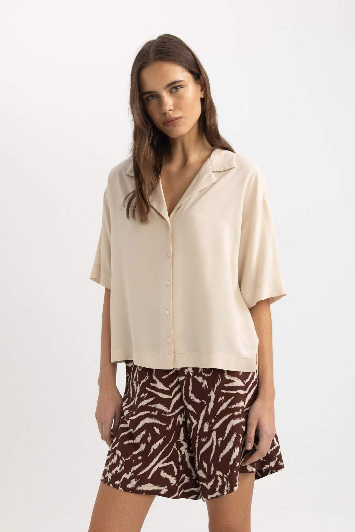 Regular Fit Polo Yaka Müslin Kısa Kollu Gömlek D5009AX24HS Regular Fit Polo Yaka Müslin Kısa Kollu Gömlek D5009AX24HS XL