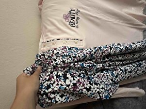 Renkli Çiçekli Sıfır Yaka Uzun Kollu Kadın Pijama Takımı Renkli Çiçekli Sıfır Yaka Uzun Kollu Kadın Pijama Takımı 902-PUDRA XL