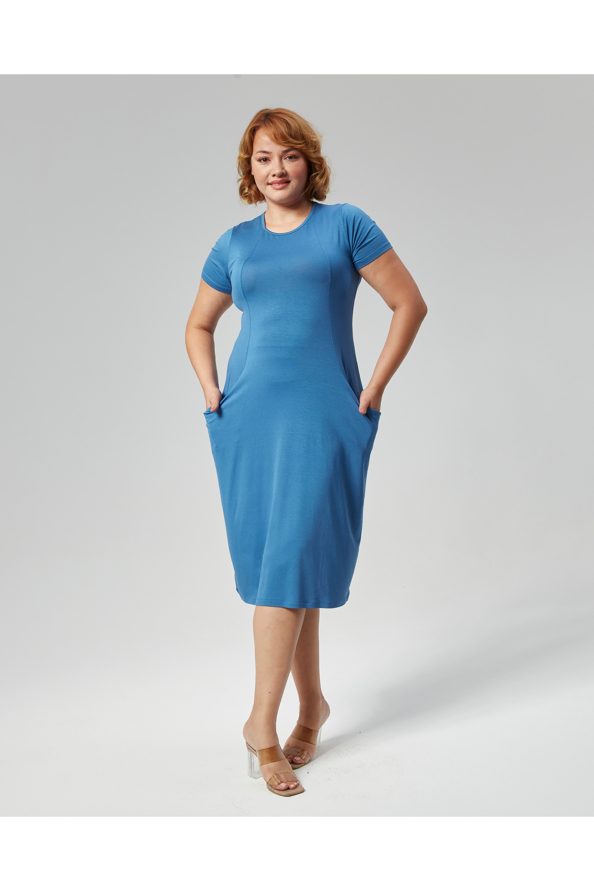 kısa kollu cepli yeşil kadın elbisesi kısa kollu cepli yeşil kadın elbisesi SEN11001110-2 2XL