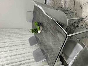 Lena Serisi 90x160 Lak Panel Antrasit İroni Krom Kaplama Ayaklı Masa Takımı ve 6 Gri Sandalye Lena Serisi 90x160 Lak Panel Antrasit İroni Krom Kaplama Ayaklı Masa Takımı ve 6 Gri Sandalye 22LENA06ANTI06KRM تک سایز