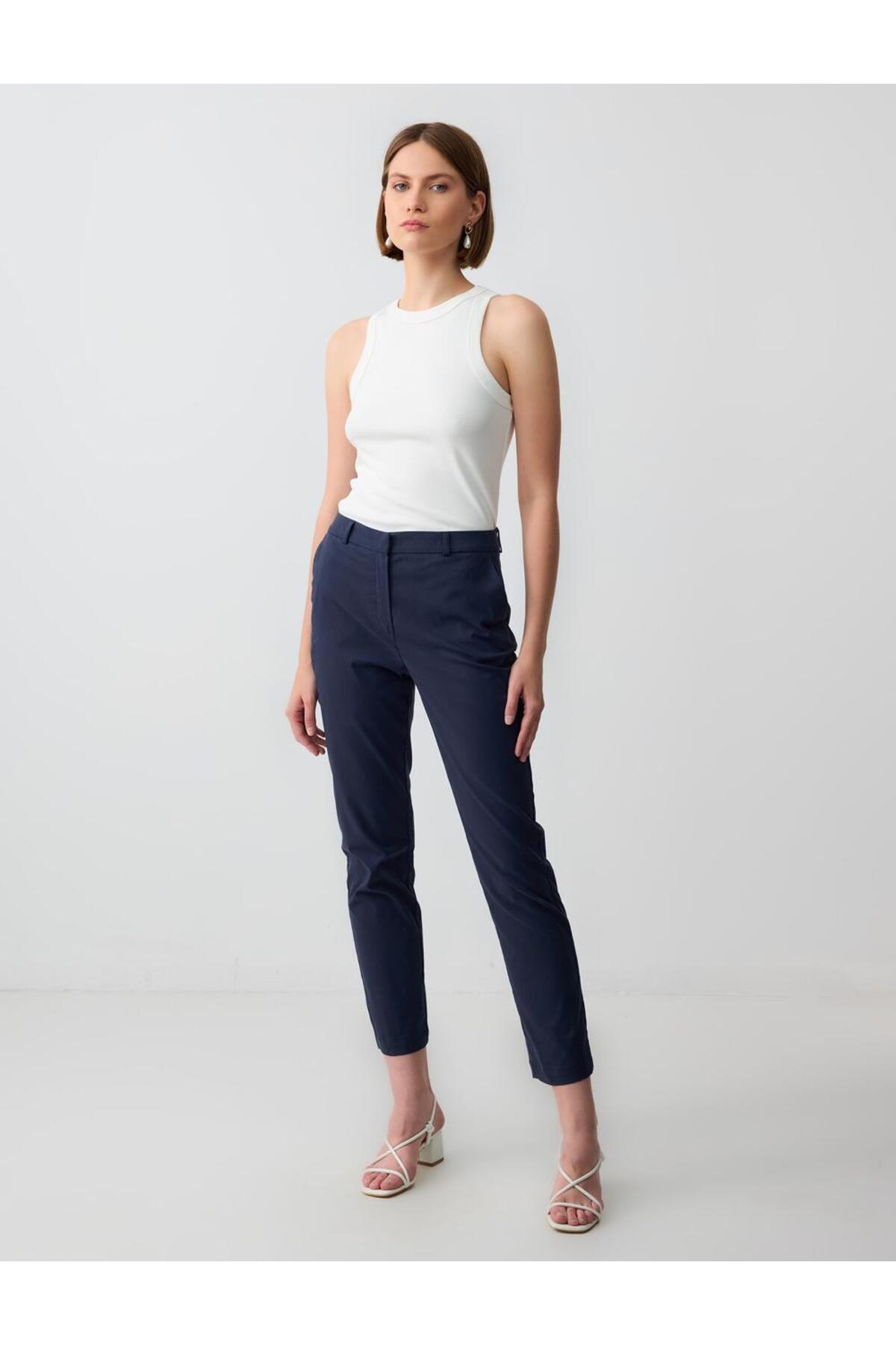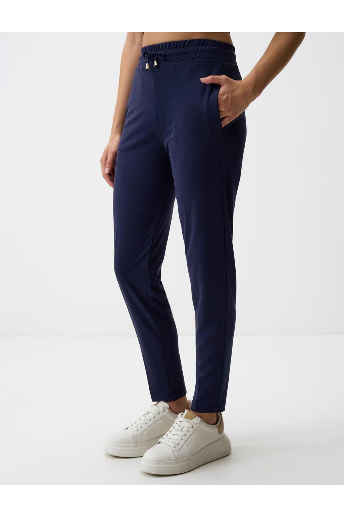 Lacivert Düz Kesim Normal Paça Yüksek Bel Örme Pantolon Lacivert Düz Kesim Normal Paça Yüksek Bel Örme Pantolon 4WW311303 XL