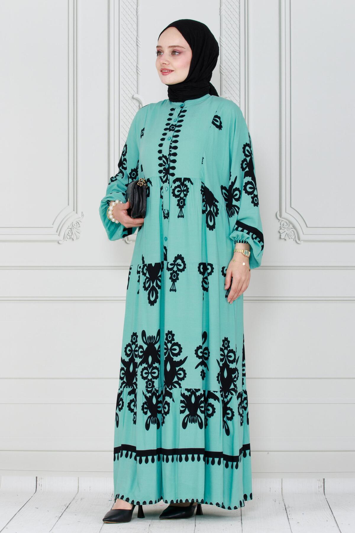 Hakim Yaka Robalı Viscon Elbise-Mint Yeşili Hakim Yaka Robalı Viscon Elbise-Mint Yeşili SVT2621 Standart