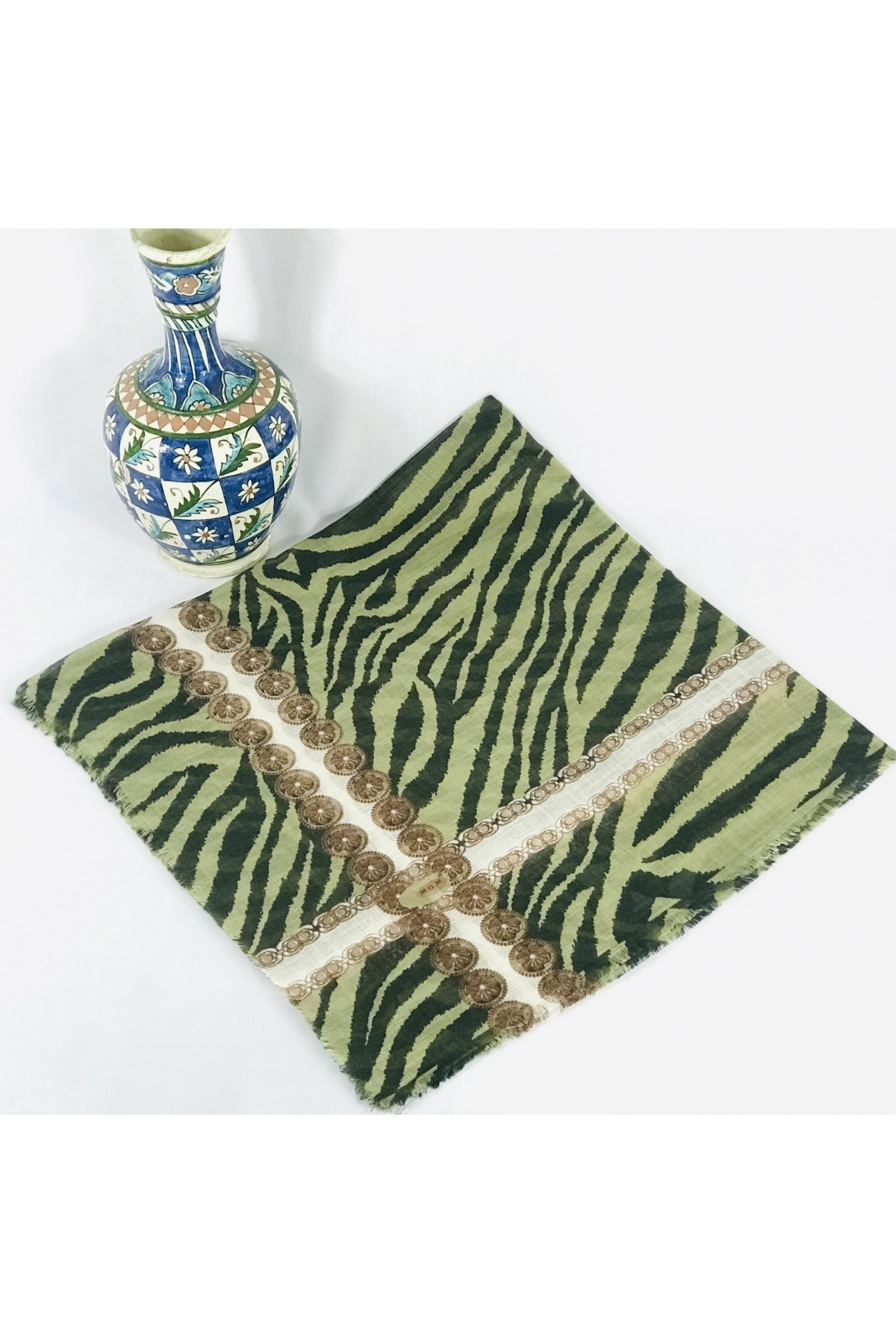 Zümra Desenli Keten Flamlı Eşarp - Desen-11 - Renk-15 Zümra Desenli Keten Flamlı Eşarp - Desen-11 - Renk-15