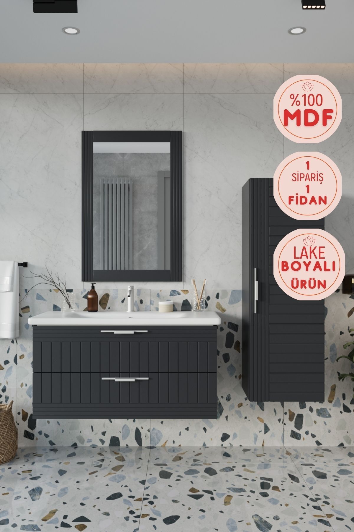 Erguvan Gümüş Kulp Antrasit Demonte 100 Cm Lavabolu Banyo Dolabı^ Ayna Erguvan Gümüş Kulp Antrasit Demonte 100 Cm Lavabolu Banyo Dolabı^ Ayna ERGUVAN ANTRASİT GÜMÜŞ KULP 100 تک سایز