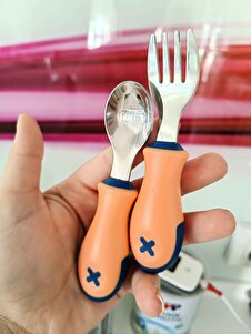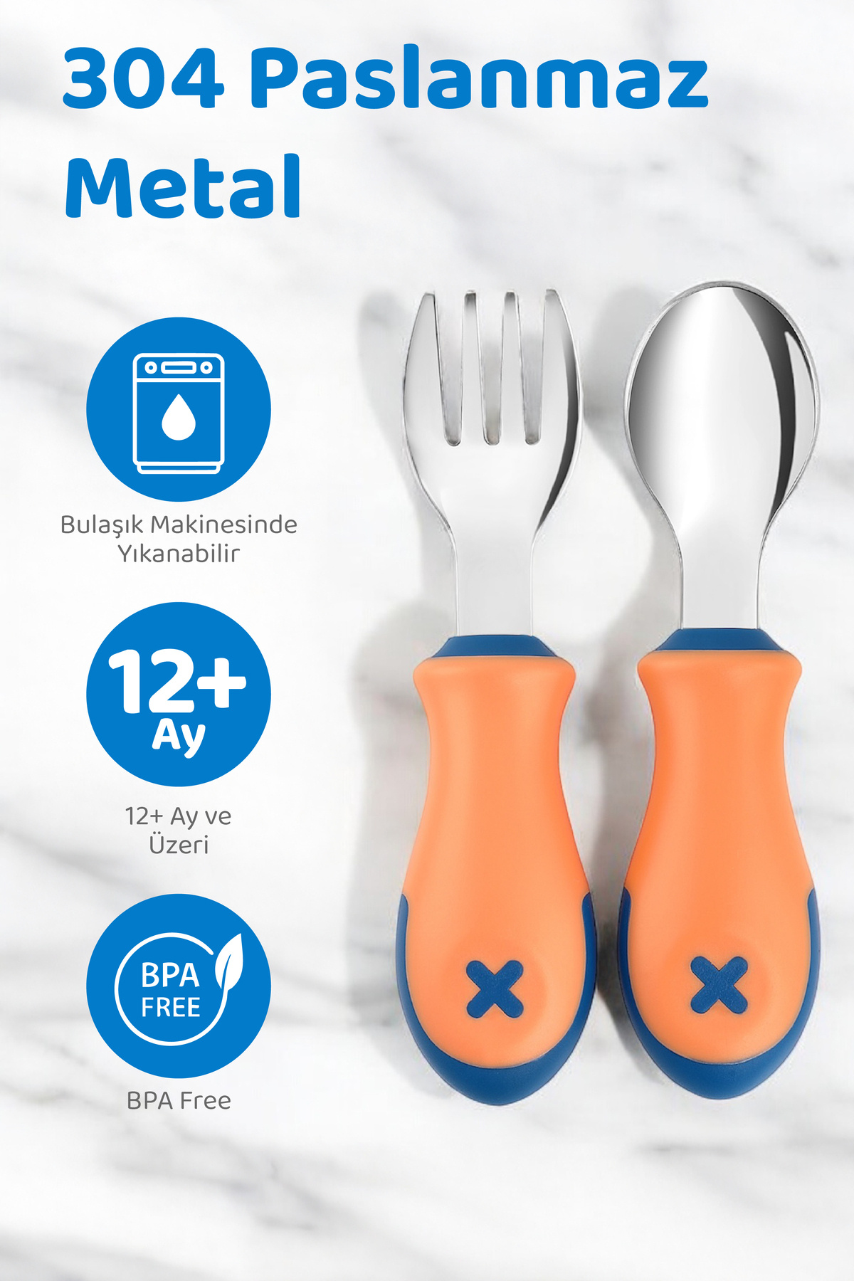 Bebek Çatal Kaşık Seti, Paslanmaz Çelik, Turuncu Bebek Çatal Kaşık Seti, Paslanmaz Çelik, Turuncu gqq-tg-fs-or تک سایز
