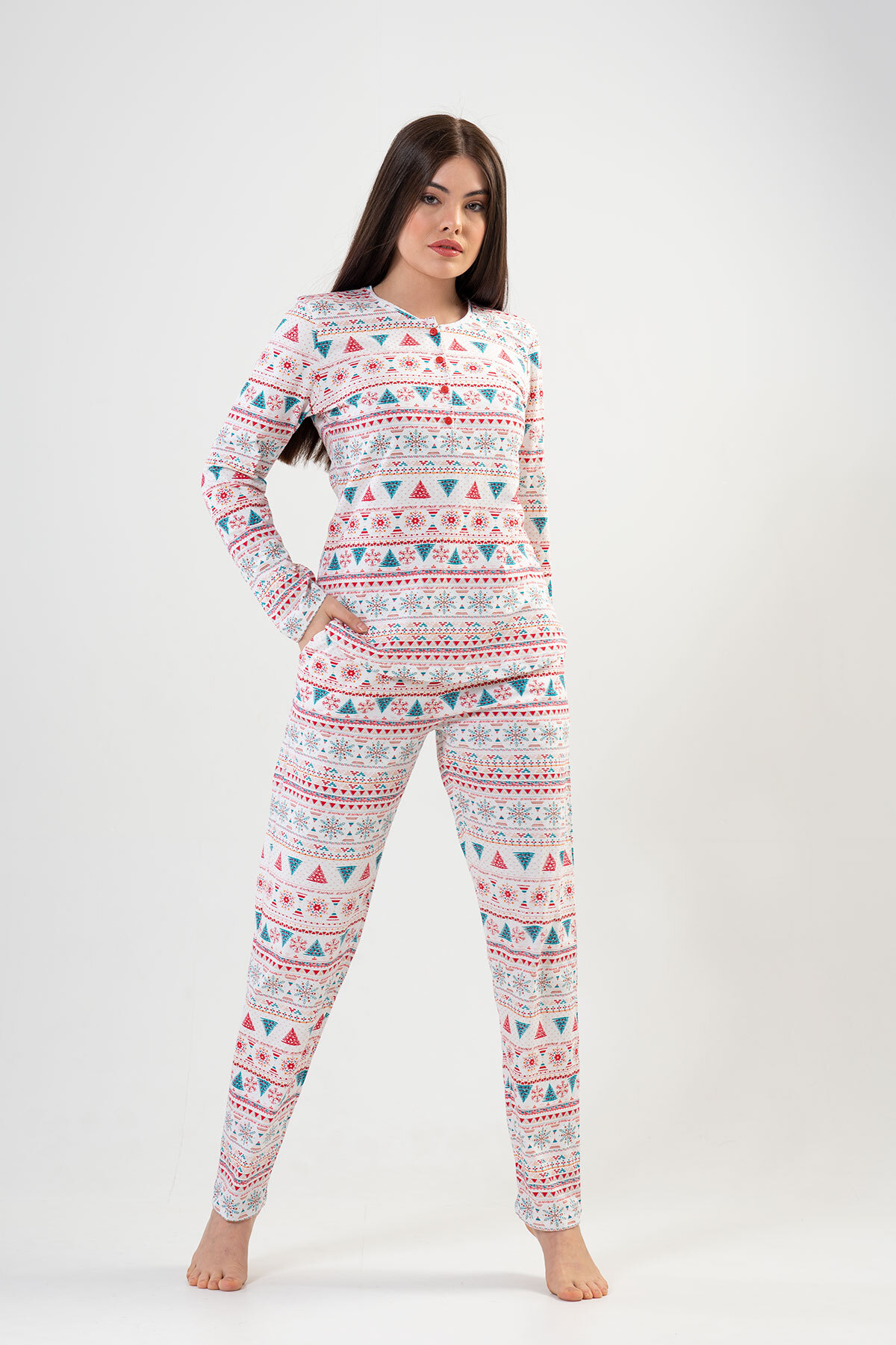 Pamuklu Kadın Büyük Beden Uzun Kol Pijama Takım , 403246 Pamuklu Kadın Büyük Beden Uzun Kol Pijama Takım , 403246 4032460035 4XL