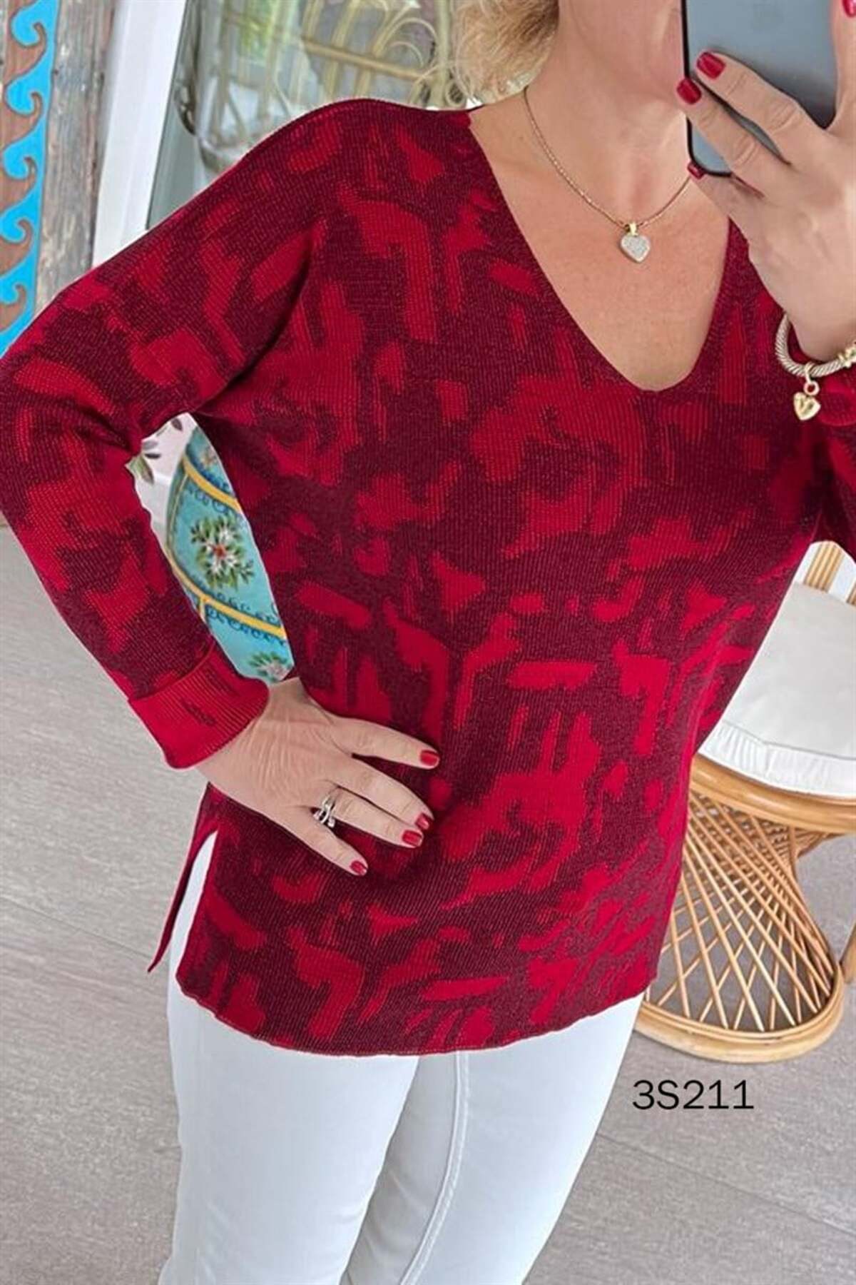 V Yaka Simli Triko Bluz 3S211 V Yaka Simli Triko Bluz 3S211 Standart