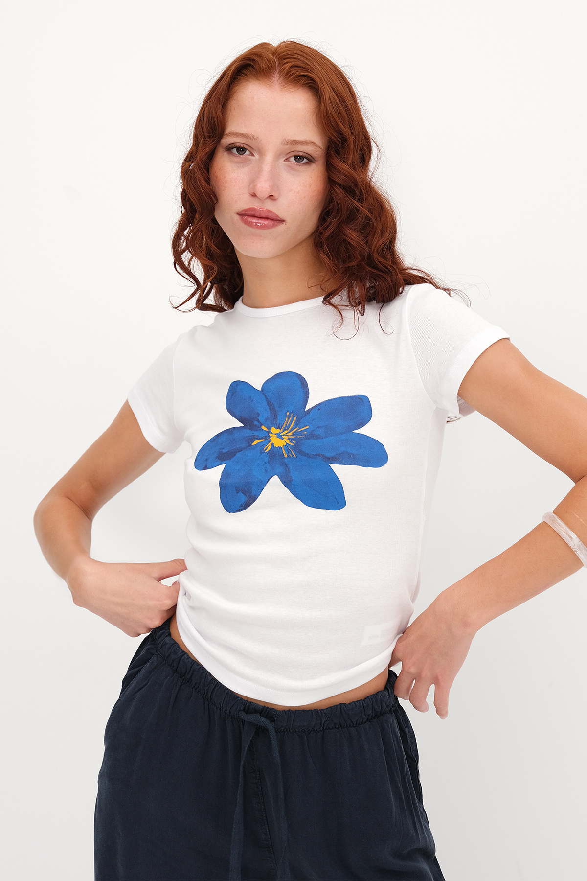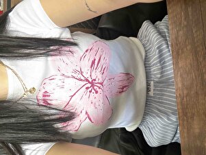 Çiçek Desenli Kısa Kollu T-shirt P1582-e11 Çiçek Desenli Kısa Kollu T-shirt P1582-e11 ADX-00033262 L