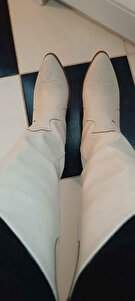 Kadın Bej Deri Nakışlı Kovboy Uzun Çizme Kadın Bej Deri Nakışlı Kovboy Uzun Çizme 200 40