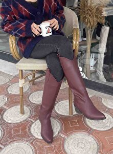Kadın Bordo Deri Nakışlu Uzun Kovboy Çizme Kadın Bordo Deri Nakışlu Uzun Kovboy Çizme 200 40