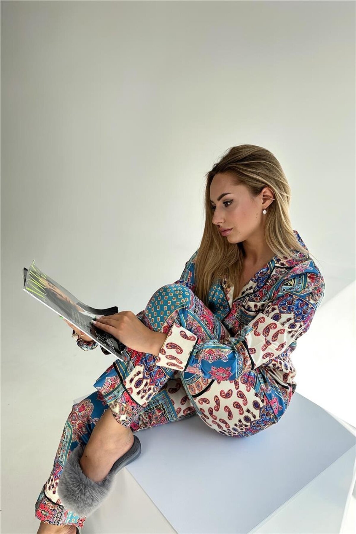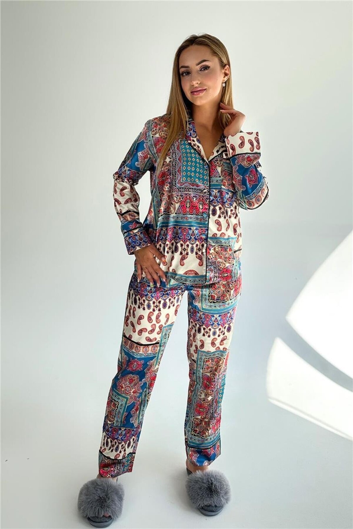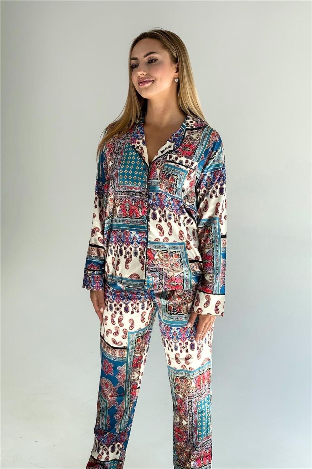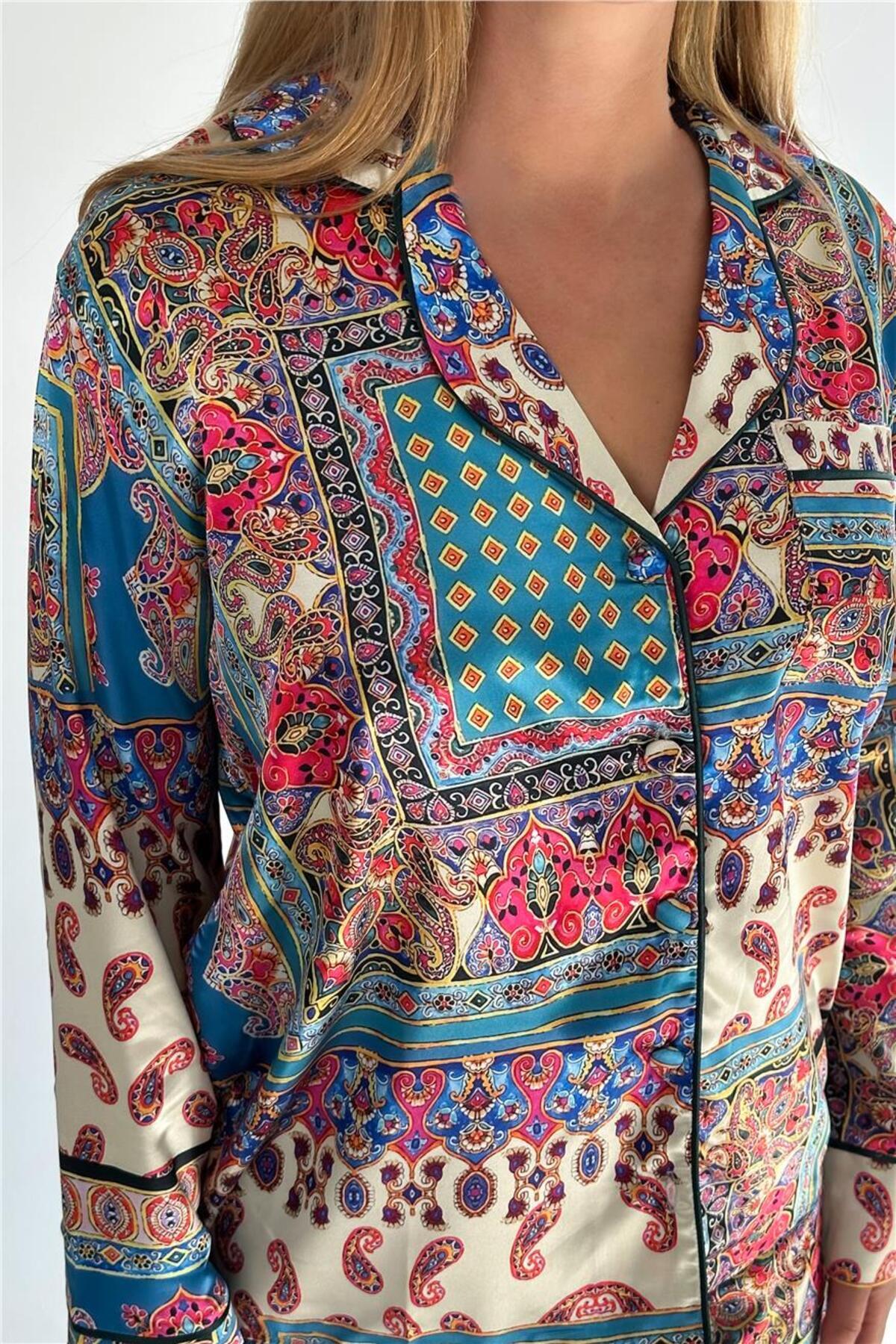 Etnik Motifler Desen Saten Uzun Pijama Takımı Etnik Motifler Desen Saten Uzun Pijama Takımı 1465 XL