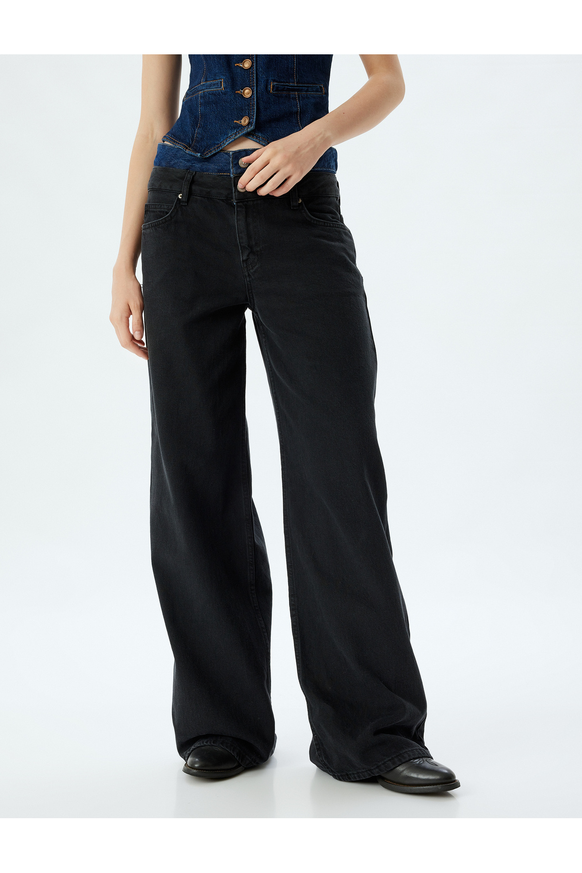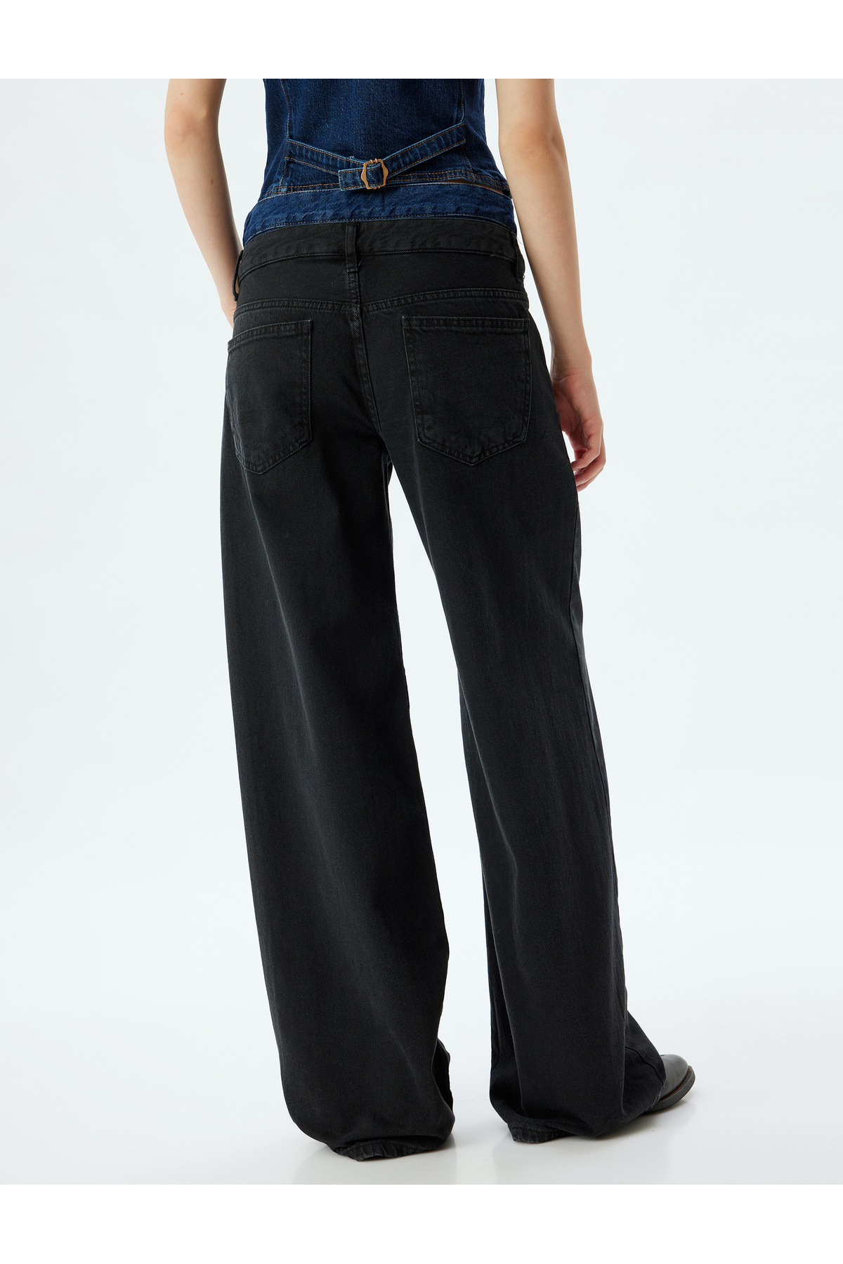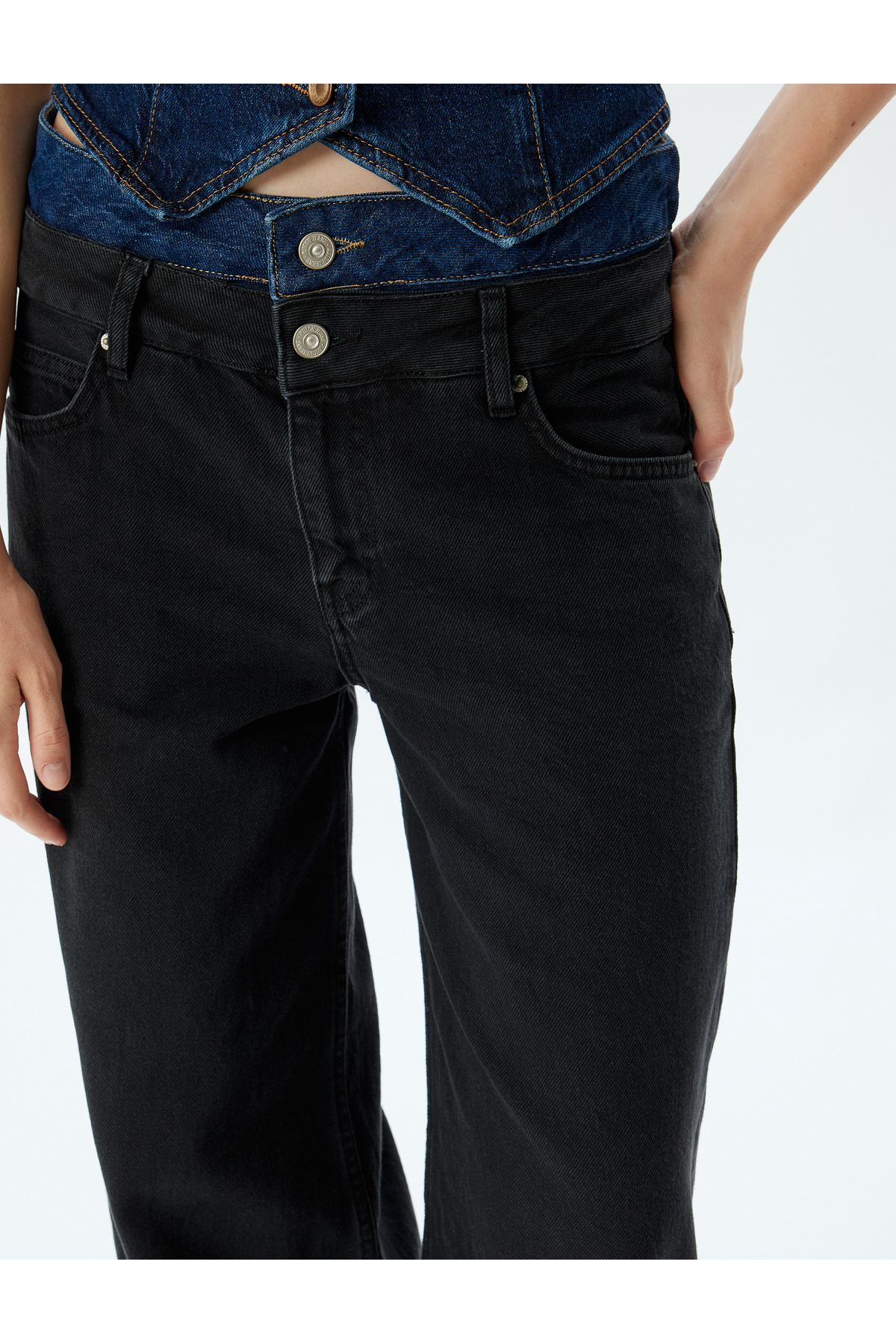 Bol Kesim Kot Pantolon Çift Bel Detaylı Düğmeli - Loose Straight Fit Jean Bol Kesim Kot Pantolon Çift Bel Detaylı Düğmeli - Loose Straight Fit Jean 5WAL40083MD 30/32