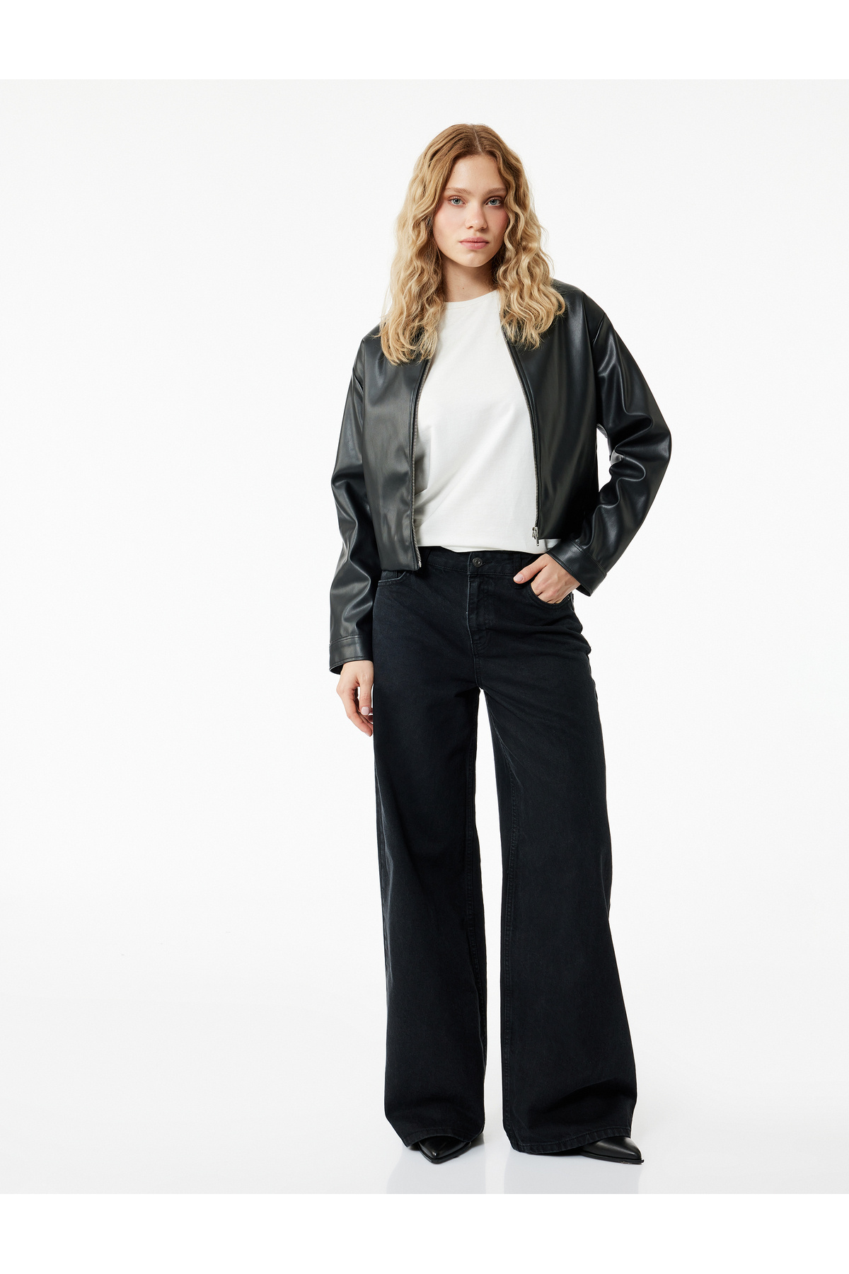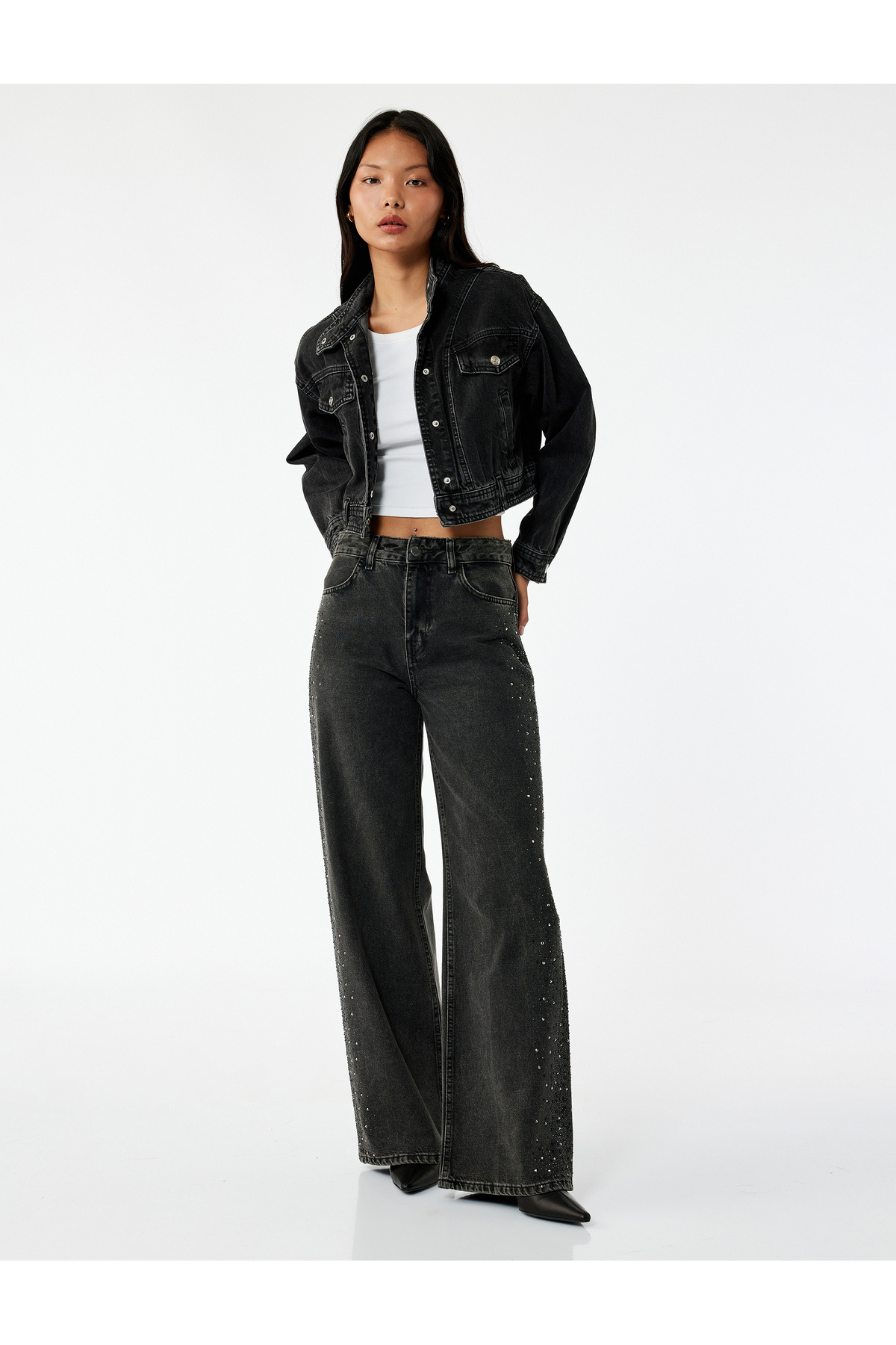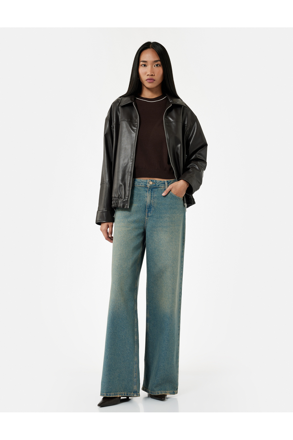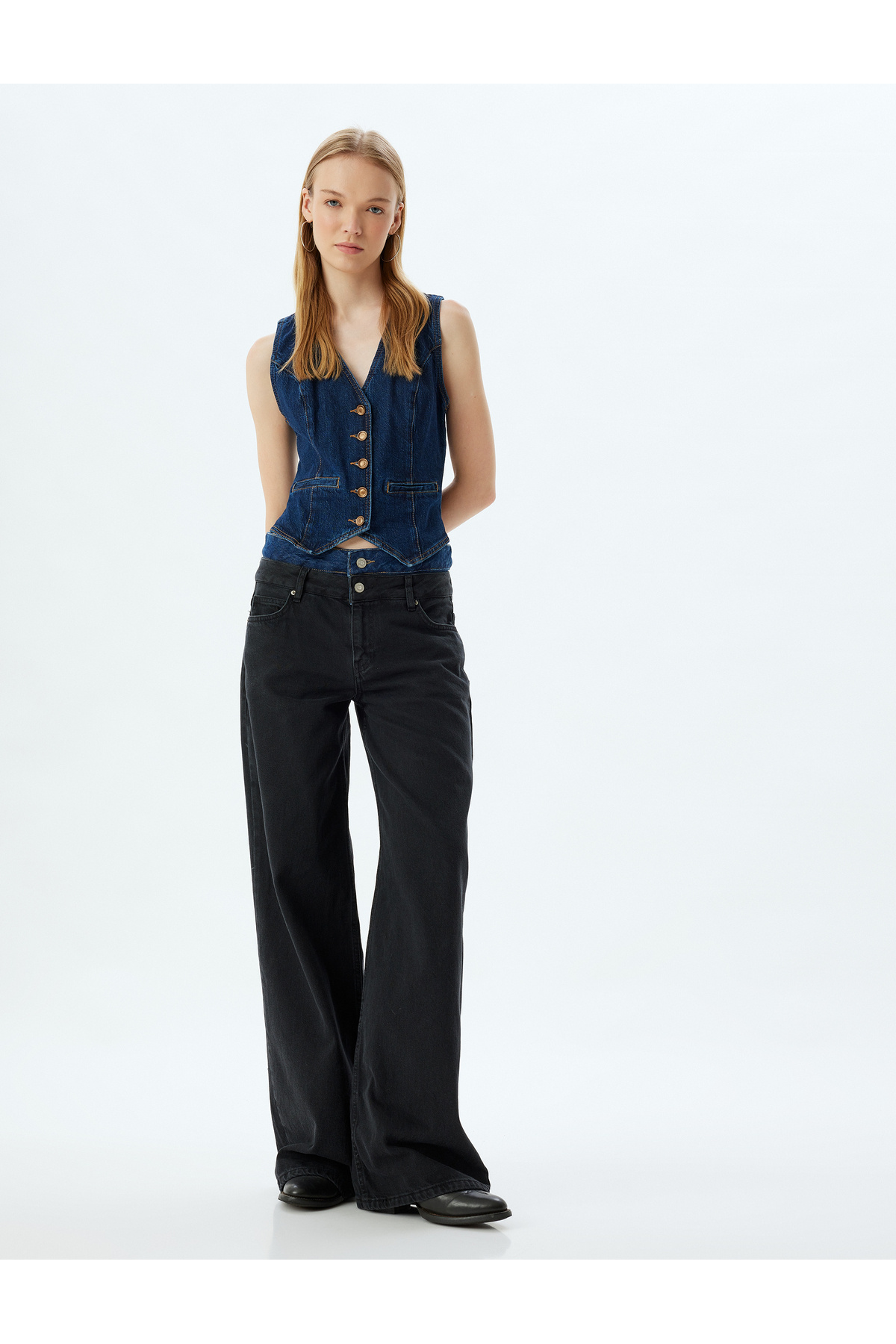 Bol Kesim Kot Pantolon Çift Bel Detaylı Düğmeli - Loose Straight Fit Jean Bol Kesim Kot Pantolon Çift Bel Detaylı Düğmeli - Loose Straight Fit Jean 5WAL40083MD 30/32