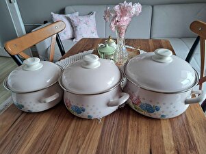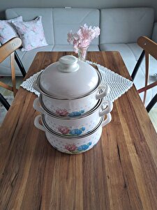 Emaye 6 Parça Tencere Seti Krem - Ortanca Dekorlu Emaye 6 Parça Tencere Seti Krem - Ortanca Dekorlu EMY8009 تک سایز