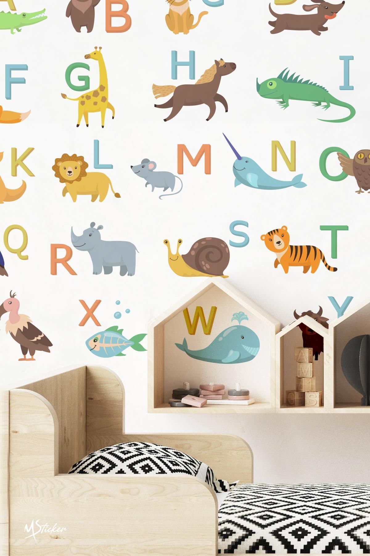 İngilizce Alfabe Duvar Sticker, Sevimli Hayvanlar ve Harfler, Çocuklar İçin Eğitici Duvar Sticker S048