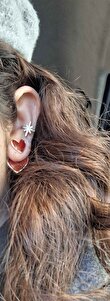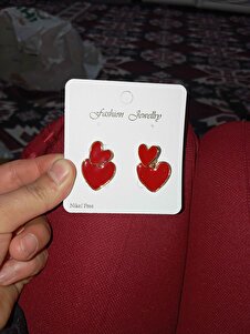 Kırmızı Mineli Kalp Tasarım Altın Renk Kadın Küpe Kırmızı Mineli Kalp Tasarım Altın Renk Kadın Küpe GLRN00663 تک سایز