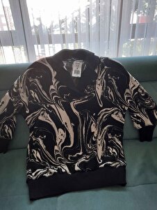 Kadın Siyah-Beyaz Polo Yaka Desenli Triko Sweatshirt ALC-X12496 Kadın Siyah-Beyaz Polo Yaka Desenli Triko Sweatshirt ALC-X12496 L