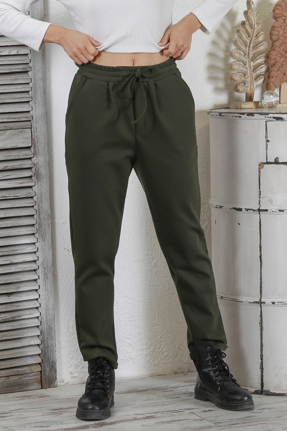 Yeşil Çift Cepli Şeritli Dokuma Lastikli Bel Dar Paça Casual Pantolon Yeşil Çift Cepli Şeritli Dokuma Lastikli Bel Dar Paça Casual Pantolon M10060000PN97970 XL