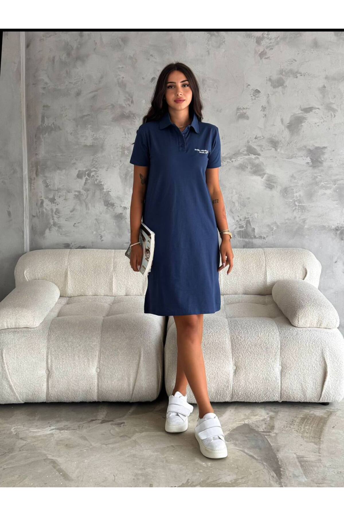Siyah Gömlek Yaka Düğmeli Uzun Kollu Cepli Göz Nakışlı Pamuklu Dokuma Casual Elbise Siyah Gömlek Yaka Düğmeli Uzun Kollu Cepli Göz Nakışlı Pamuklu Dokuma Casual Elbise M10160000EL90813 2XL