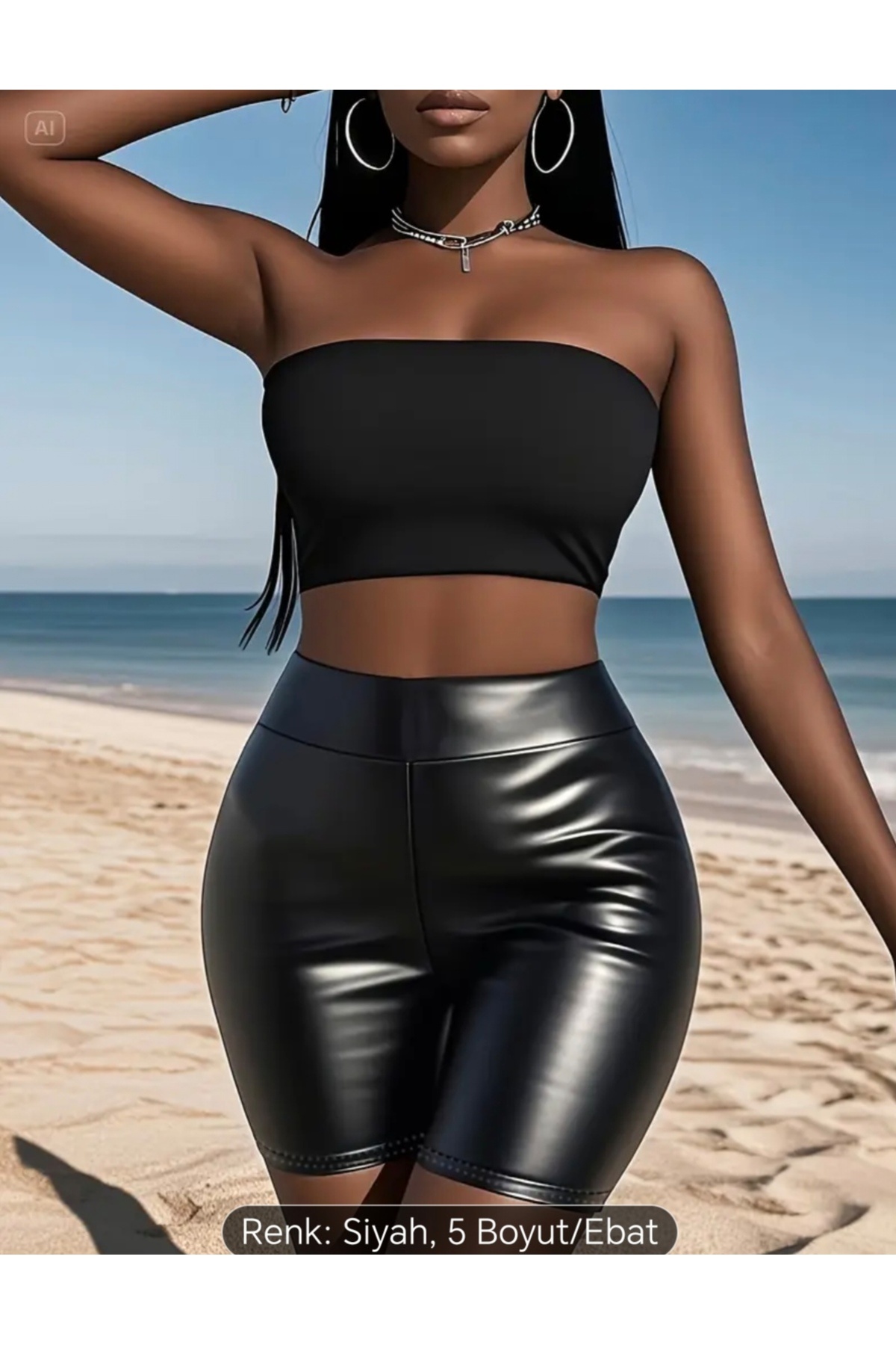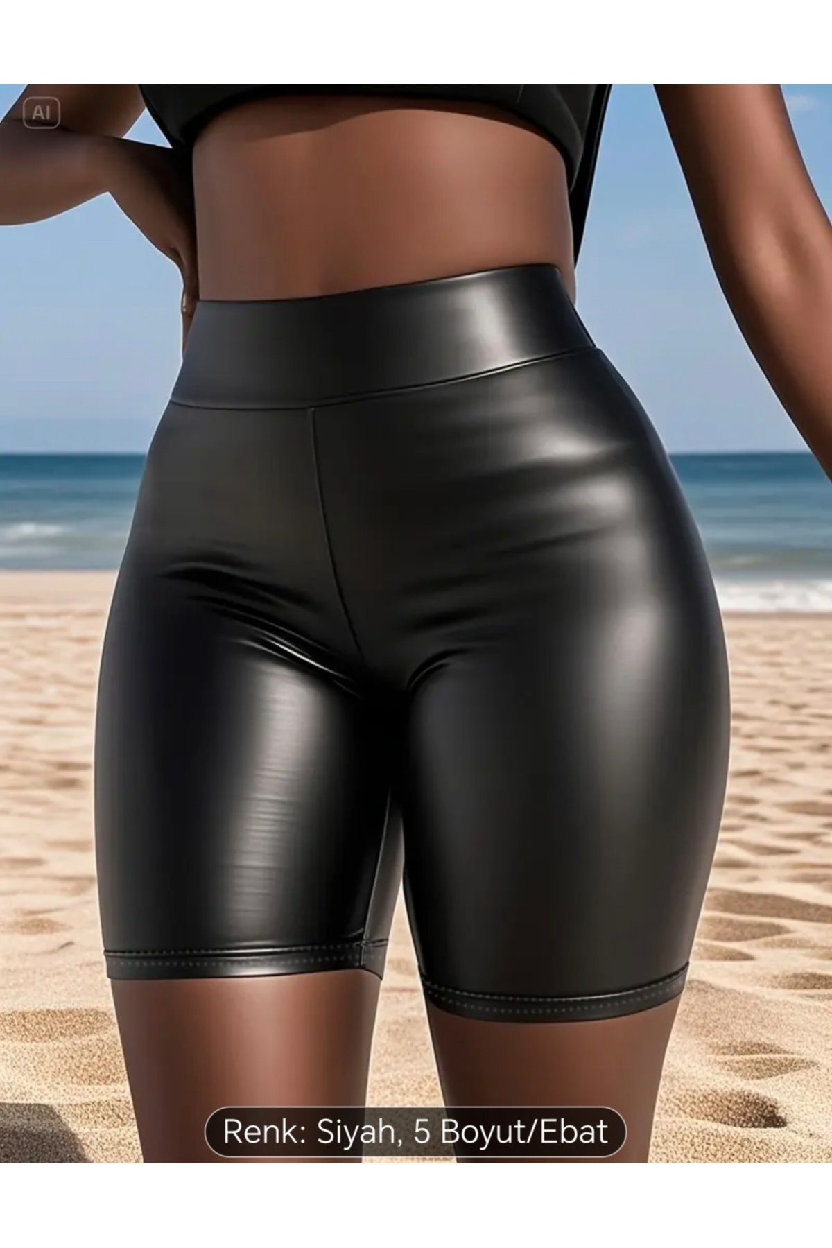 Deri tayt şort yüksel bel seksi siyah renk Deri tayt şort yüksel bel seksi siyah renk 203031ks 5XL