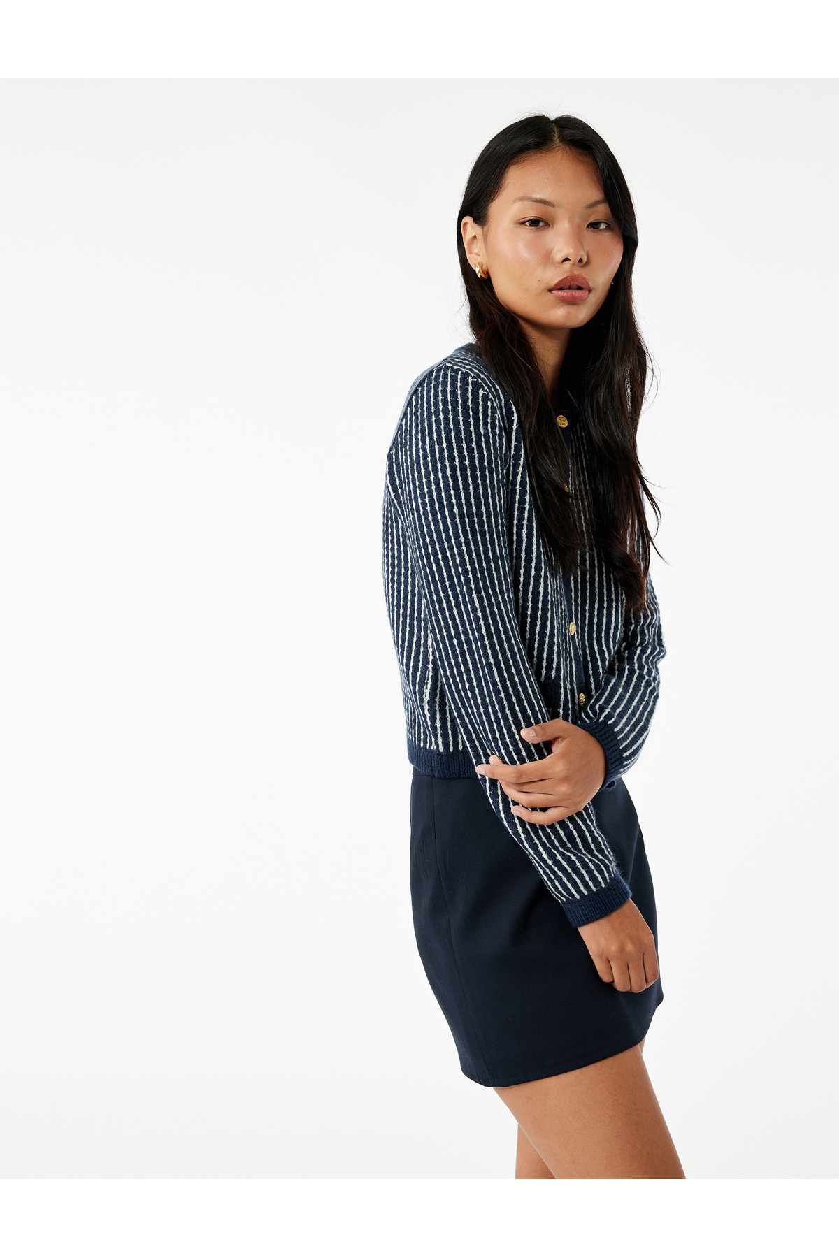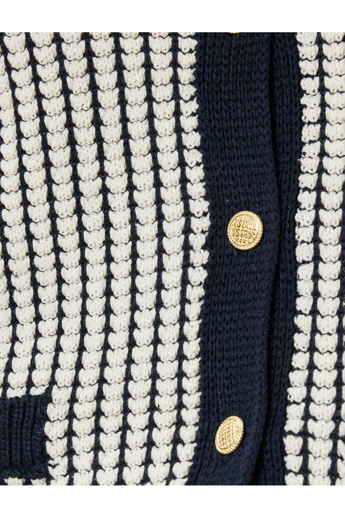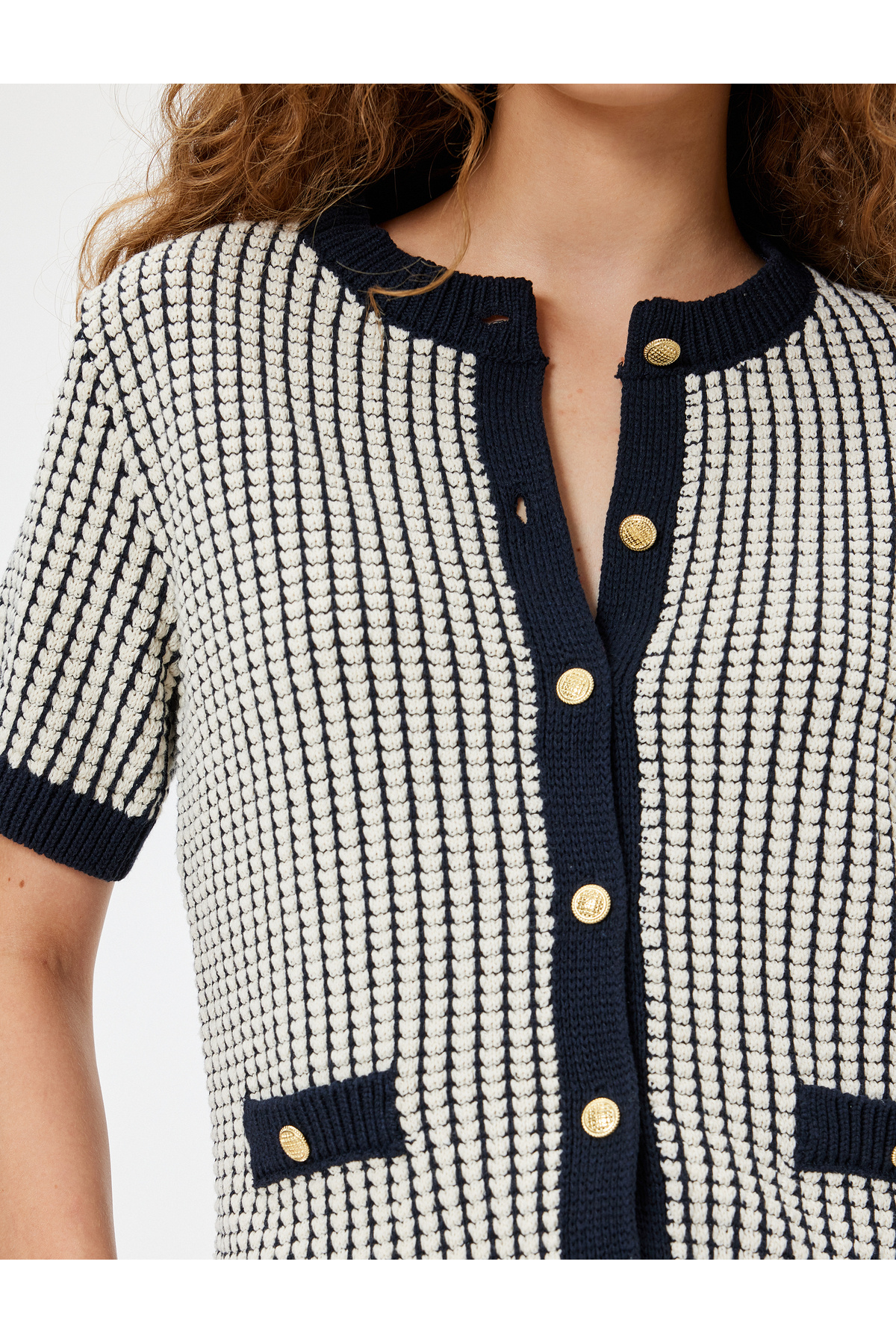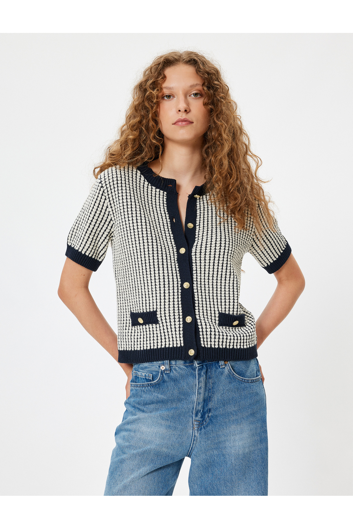 Triko Hırka Düğmeli Kısa Kollu Bisiklet Yaka Cep Detaylı Desenli Triko Hırka Düğmeli Kısa Kollu Bisiklet Yaka Cep Detaylı Desenli 5WAL90084IT L