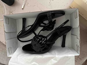 Lee Siyah Gül Motifli Lastikli Kemer Bağlı Kadın Topuklu Ayakkabı Lee Siyah Gül Motifli Lastikli Kemer Bağlı Kadın Topuklu Ayakkabı LEE 40