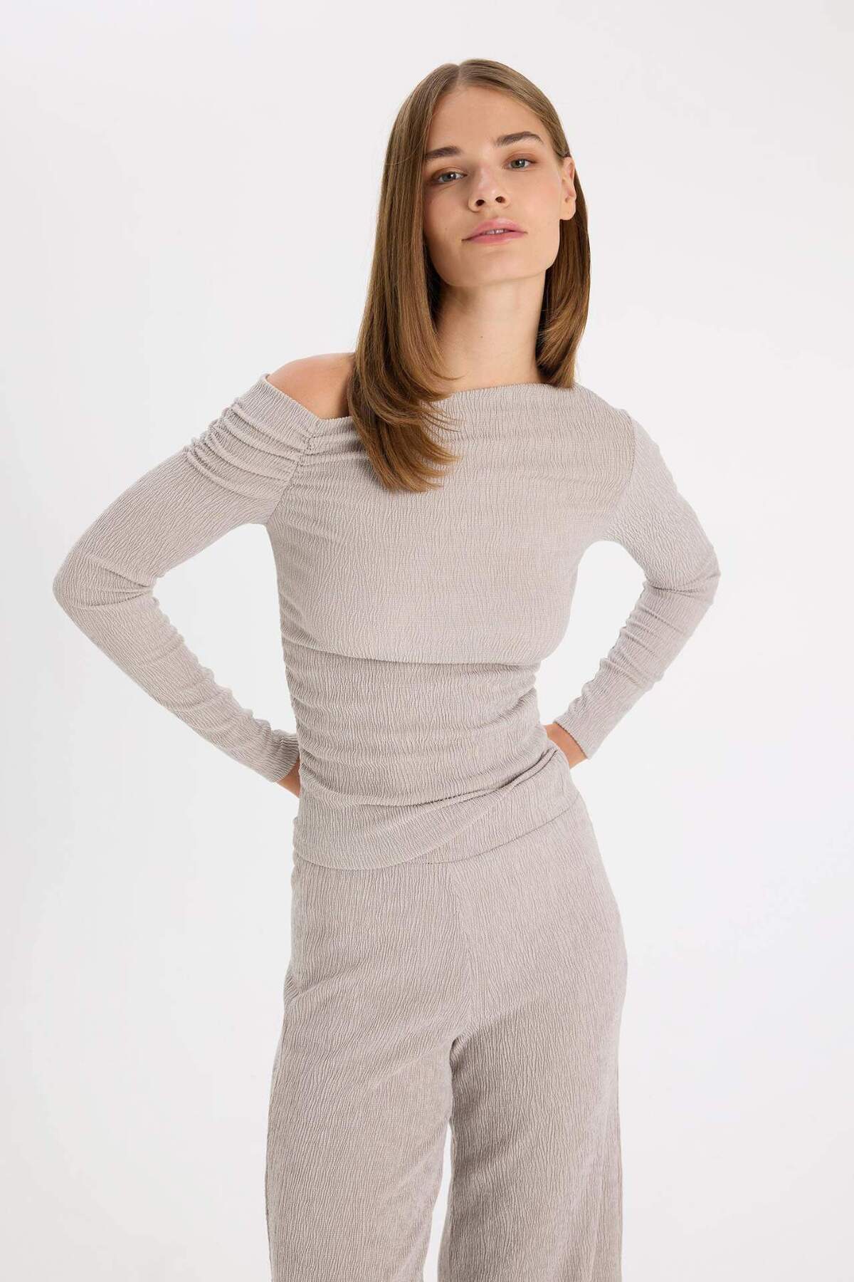 Slim Fit Dar Kesim Tek Omuzlu Bürümcük Uzun Kollu Tişört D4982AX24AU Slim Fit Dar Kesim Tek Omuzlu Bürümcük Uzun Kollu Tişört D4982AX24AU 2XL