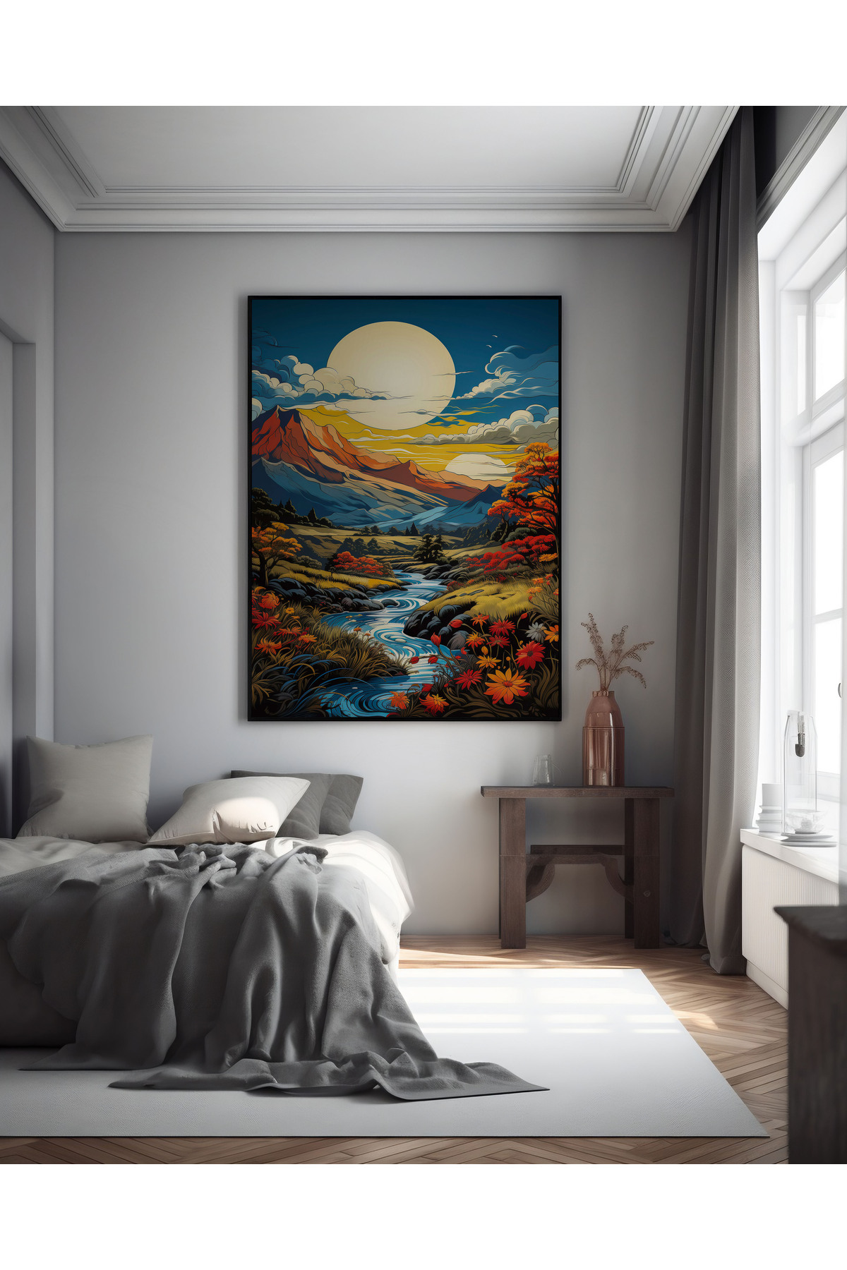 Dağların Arasında Günbatımı Dekoratif Kanvas TABLO Dağların Arasında Günbatımı Dekoratif Kanvas TABLO AR130640 80 x 120