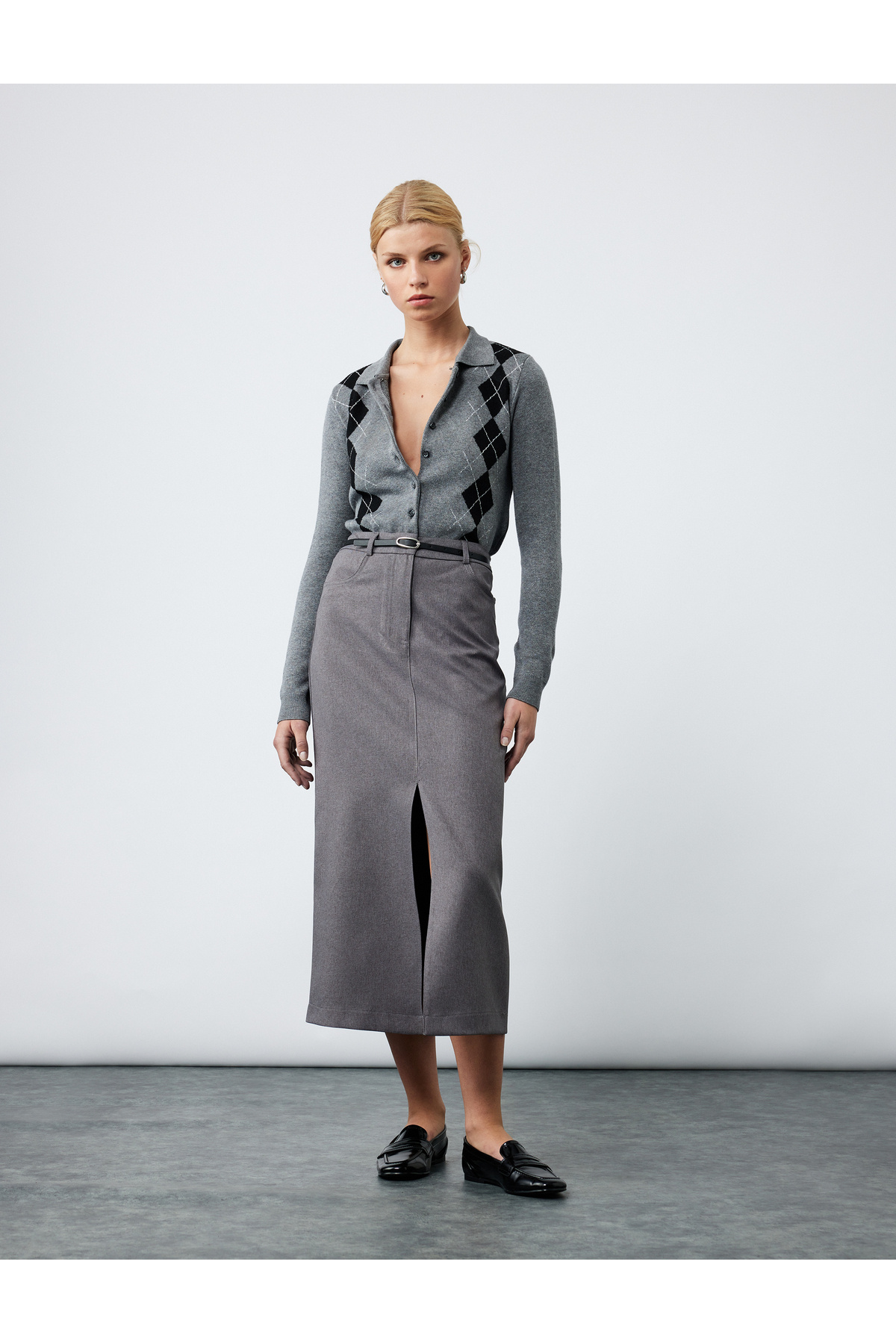 Yırtmaçlı Standart Bel Slim Fit Uzun Kalem Etek Yırtmaçlı Standart Bel Slim Fit Uzun Kalem Etek 5WAK10047EK XL
