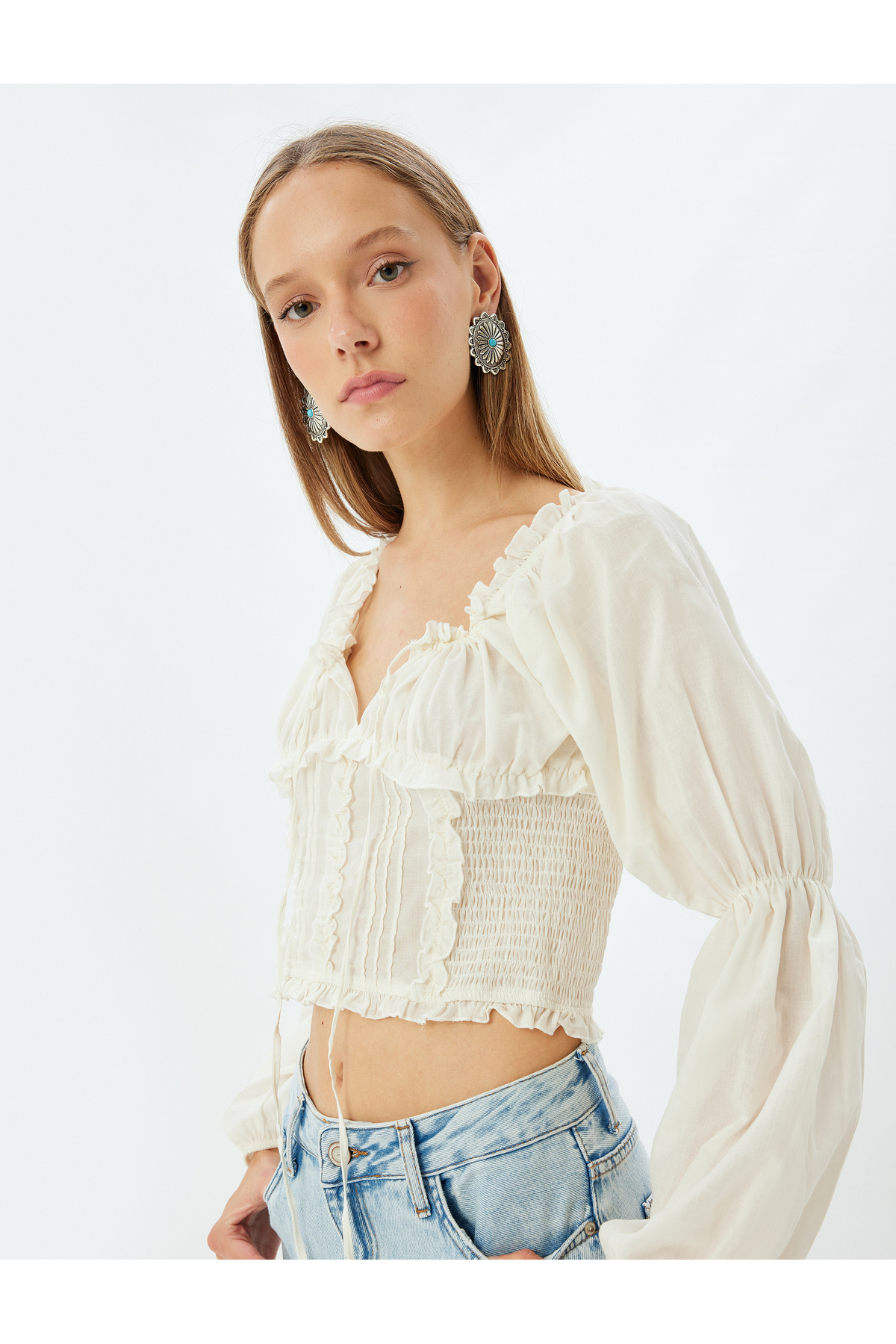 Balon Kol Bluz Düğmeli Yakası Dantelli Pamuklu Balon Kol Bluz Düğmeli Yakası Dantelli Pamuklu 4SAL60233IW 40