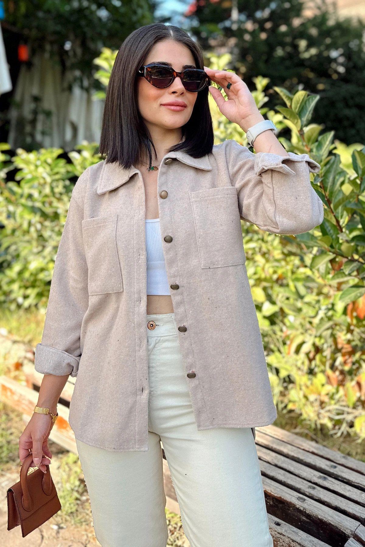 Camel Oversize tek cepli gabardin rahat kesim soft dokulu pamuk kadın gömlek | MKW168174-01 Camel Oversize tek cepli gabardin rahat kesim soft dokulu pamuk kadın gömlek | MKW168174-01 L