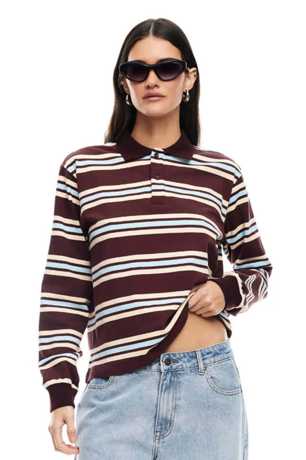 Çizgili Lacivert Polo Tişört Boxy Fit 1612813-87988 Çizgili Lacivert Polo Tişört Boxy Fit 1612813-87988 L