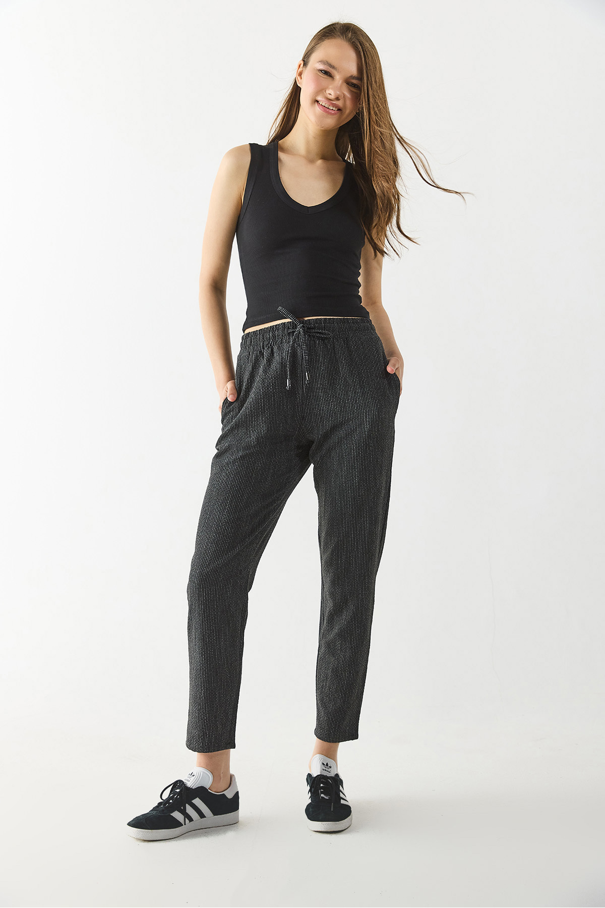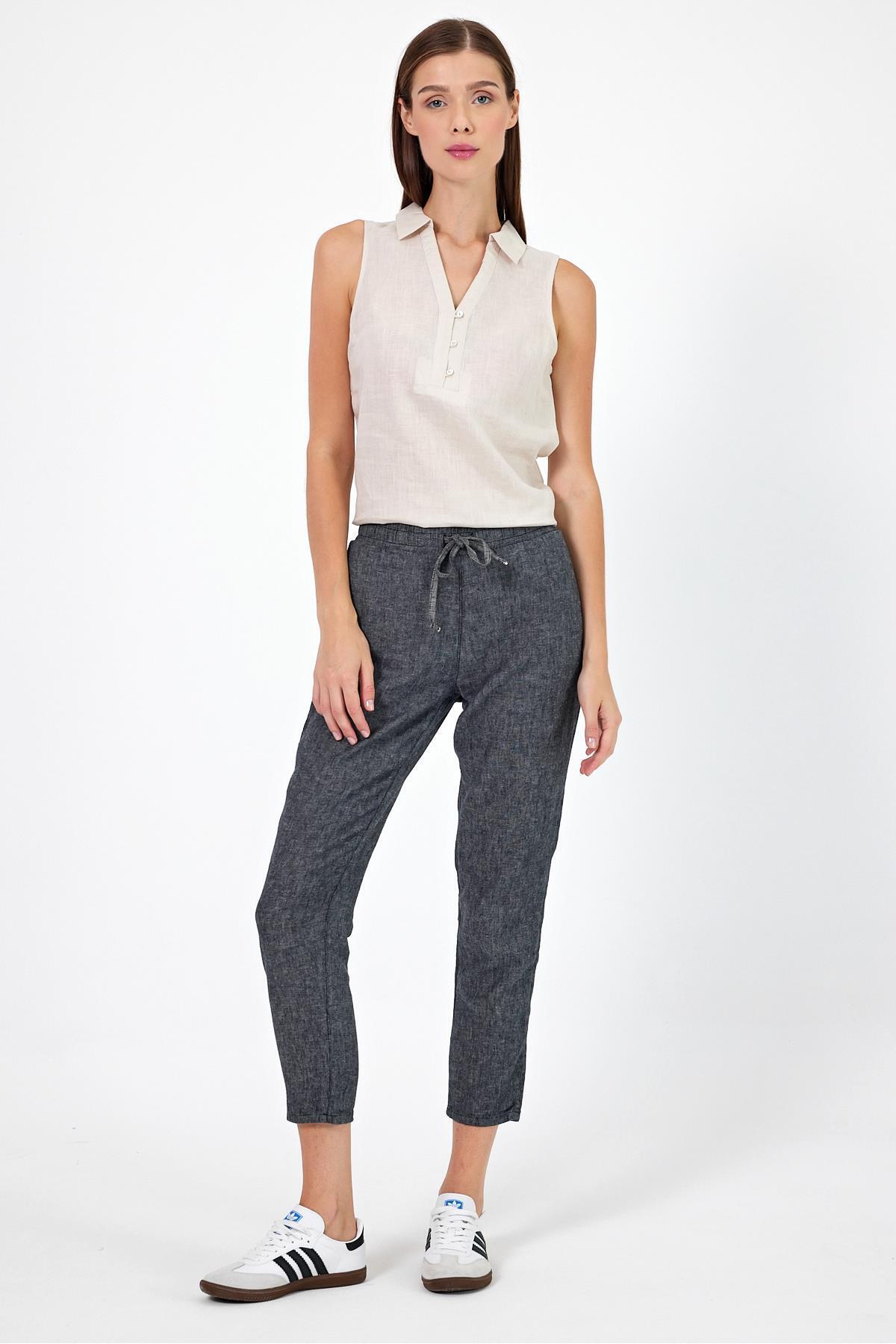 Kadın Alian Siyah Beli Lastikli Keten Beach Pantolon Kadın Alian Siyah Beli Lastikli Keten Beach Pantolon 1Y2410454TK XS/25