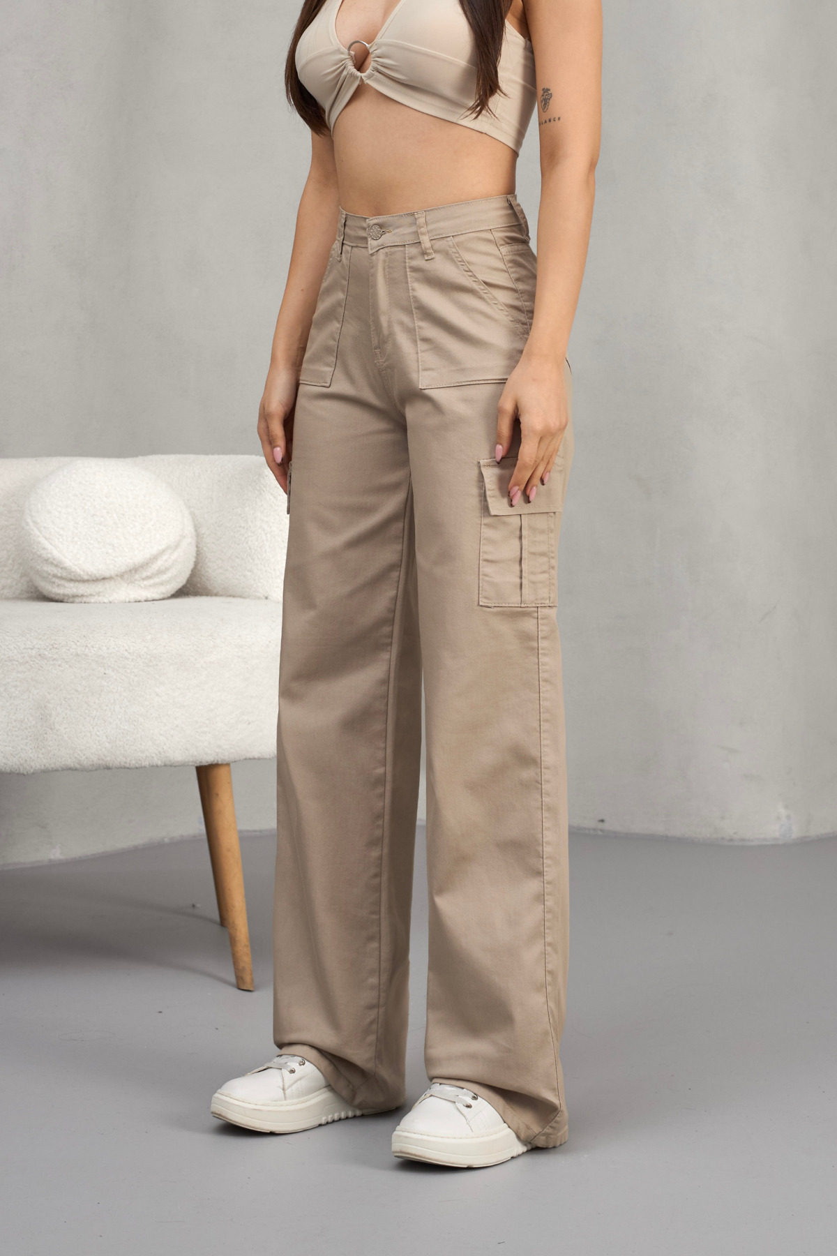 Kadın Kargo Straight fit Yüksek Bel Geniş Paça Pantolon Kadın Kargo Straight fit Yüksek Bel Geniş Paça Pantolon ALN00001710 42