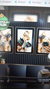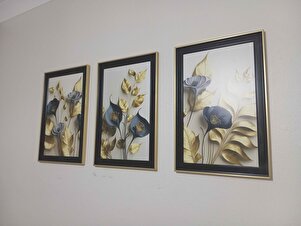 Zarif Altın Ve Mavi Çiçekler 3 Parça Gold Siyah Çerçeveli Tablo Cvplk Zarif Altın Ve Mavi Çiçekler 3 Parça Gold Siyah Çerçeveli Tablo Cvplk EV-3-PLK-630 60 x 40