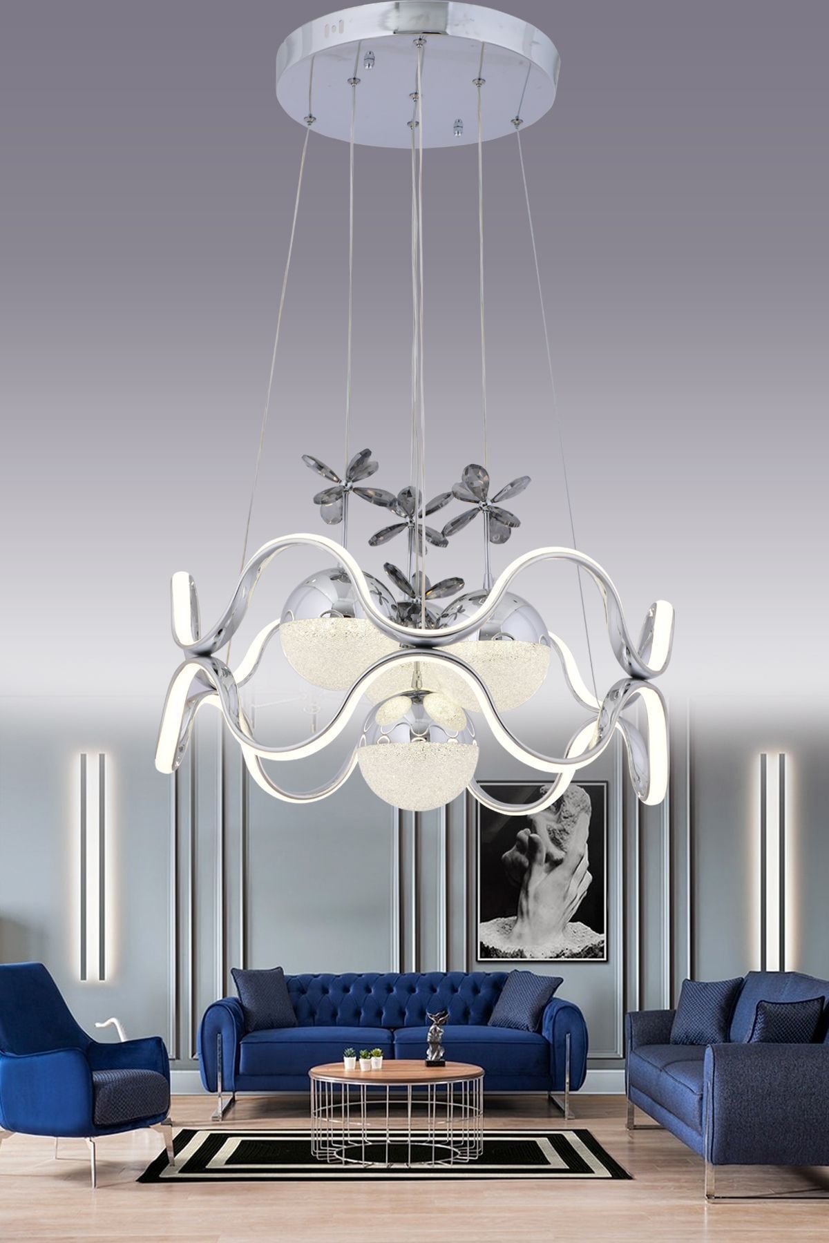 Tibet 3 Renk Kumandalı Ve Dimmerli Krom ( Sarı Beyaz Ve Gün Işığı ) Luxury Led Kristal Taşlı Avize Tibet 3 Renk Kumandalı Ve Dimmerli Krom ( Sarı Beyaz Ve Gün Işığı ) Luxury Led Kristal Taşlı Avize HL050 تک سایز