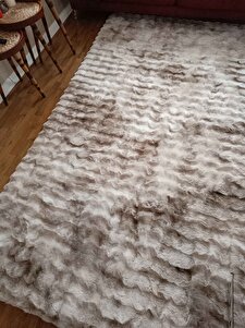 Çok güzel, kaliteli bir ürün. Kalın, yumuş yumuş tüyleri var. Eşimle birlikte silkeleyip serdik. Üretim esnasında kalan yüzeydeki tüyler böylece gitti. Tertemiz, kullanırken hiç tüyü dökülmüyor. Robot süpürgem de çok rahat üzerinde geziyor! Üzerinde yürürken alt tabanı hiç kaymıyor. Ama tüyleri biraz kaygan, dikkatli yürümek lazım, çorapla yürürken daha kaygan oluyor. Ben 200x300 ölçüsü yani 6m2 aldım. Çok memnunum. Evdeki 12 kiloluk çamaşır makinesi sığmaz, halı yıkamacılarda büyük makinede yıkamaya uygun. Şıklık ve hijyen sevenler alabilir 👍