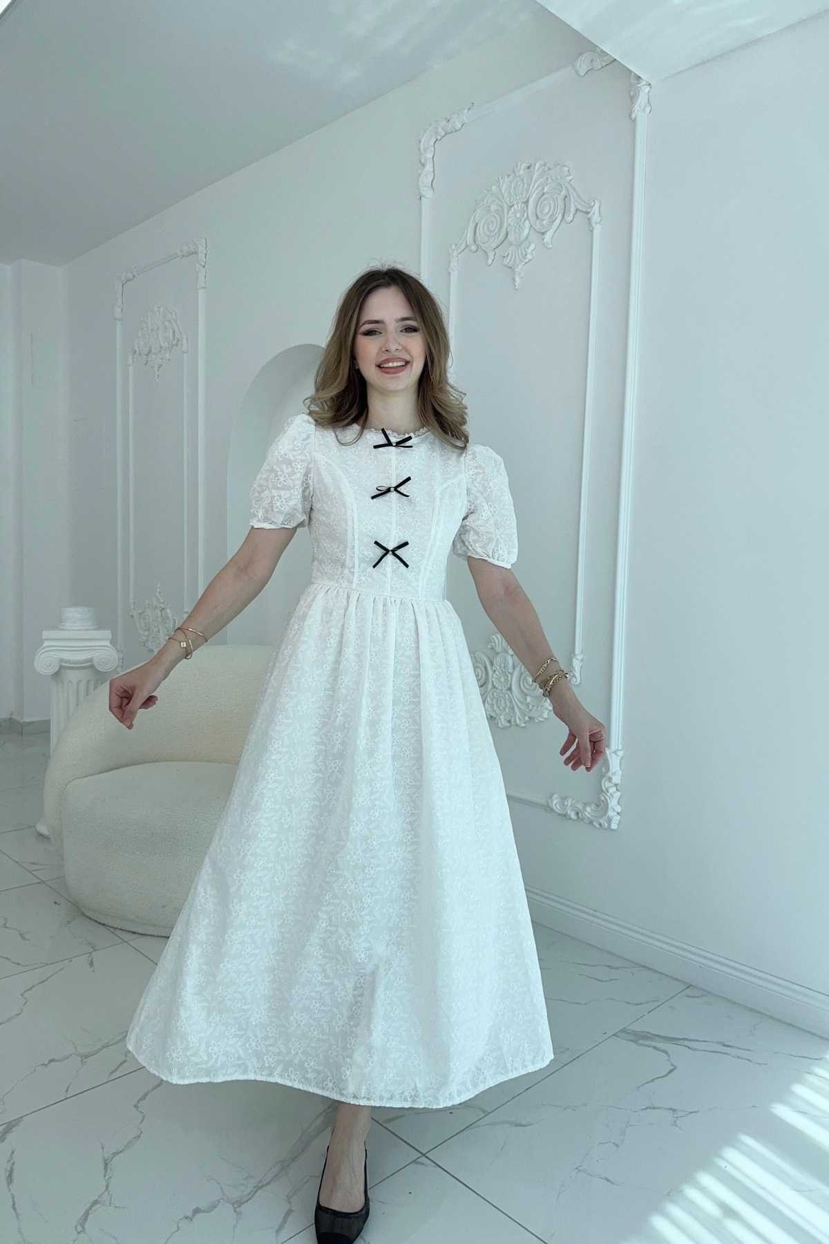 Beyaz Boğazlı Drape Detaylı Şifon Elbise Beyaz Boğazlı Drape Detaylı Şifon Elbise 7839 L
