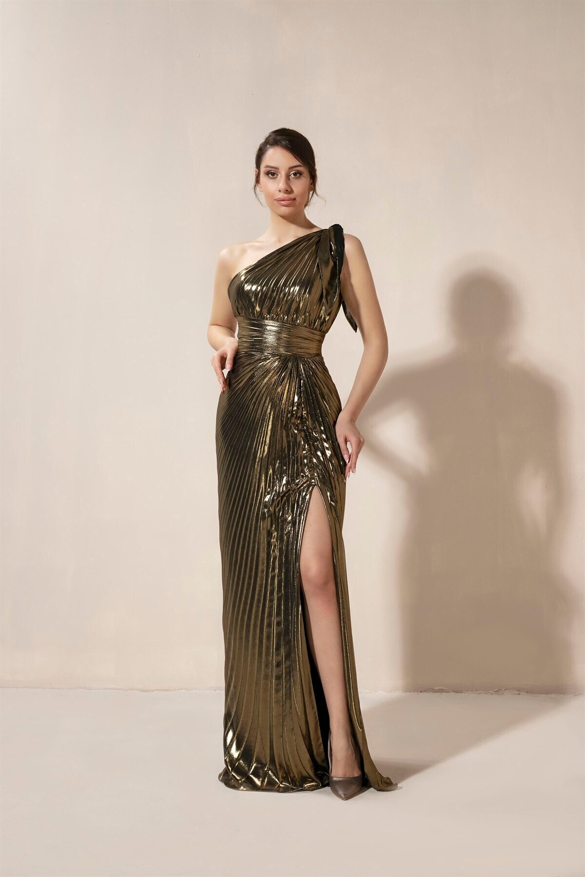 Tek Omuz Bel Dekolteli Zincirli Saten Abiye Elbise Tek Omuz Bel Dekolteli Zincirli Saten Abiye Elbise S-23K4120012 XL