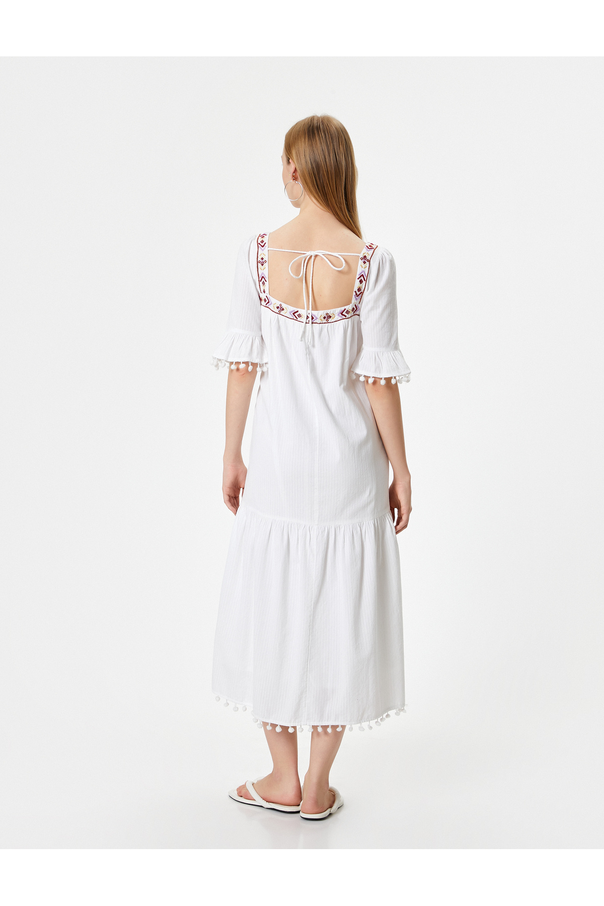 Balon Kol Elbise Kare Yaka İşlemeli Bağlama Detaylı Balon Kol Elbise Kare Yaka İşlemeli Bağlama Detaylı 4SAL80068IW 46