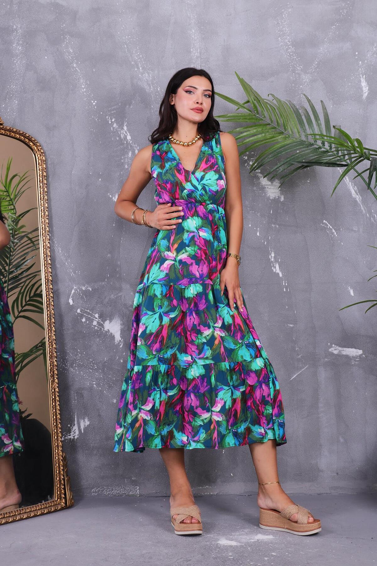 Yakası Balenli Kalın Askılı Elbise Yakası Balenli Kalın Askılı Elbise 4Y-ELB0216 XL