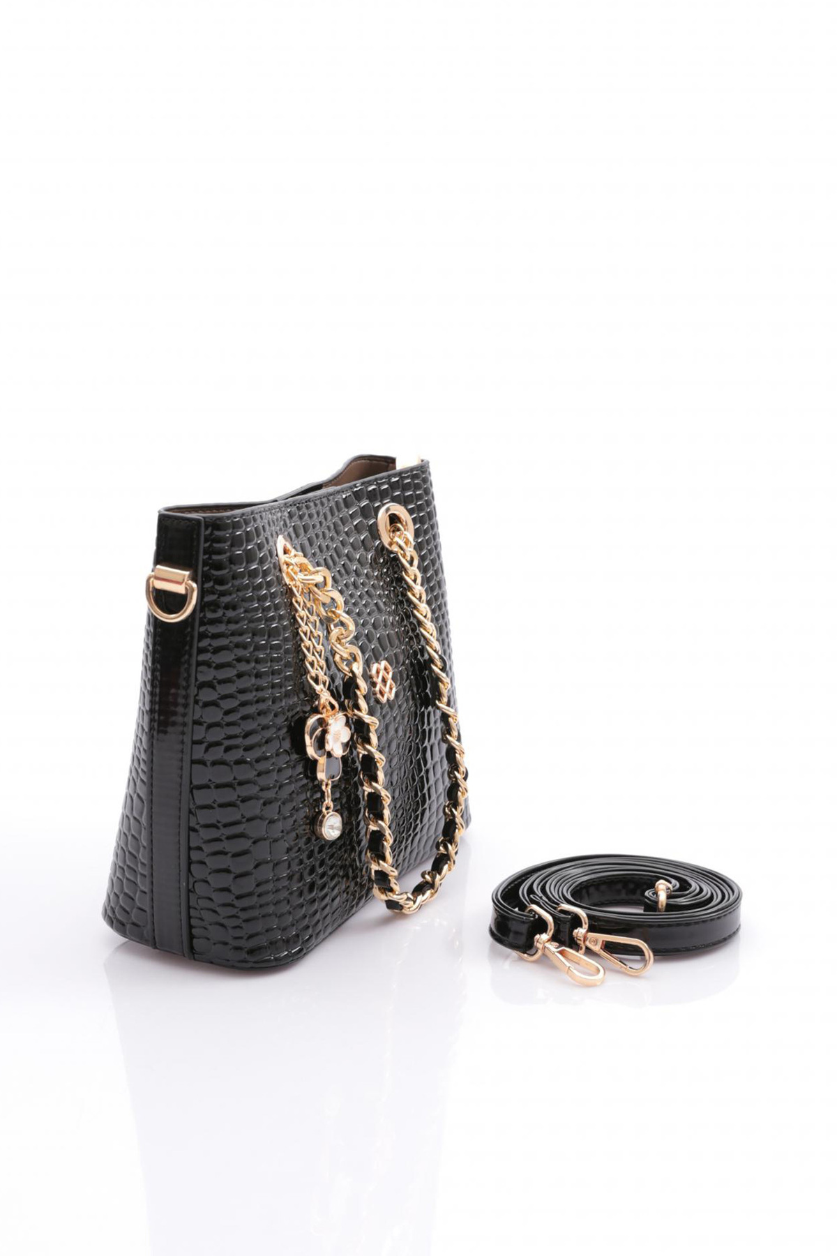 Kadın Çiçek Broşlu Zincir Detaylı Çanta Siyah Fasulye 81103555 Kadın Çiçek Broşlu Zincir Detaylı Çanta Siyah Fasulye 81103555 Standart