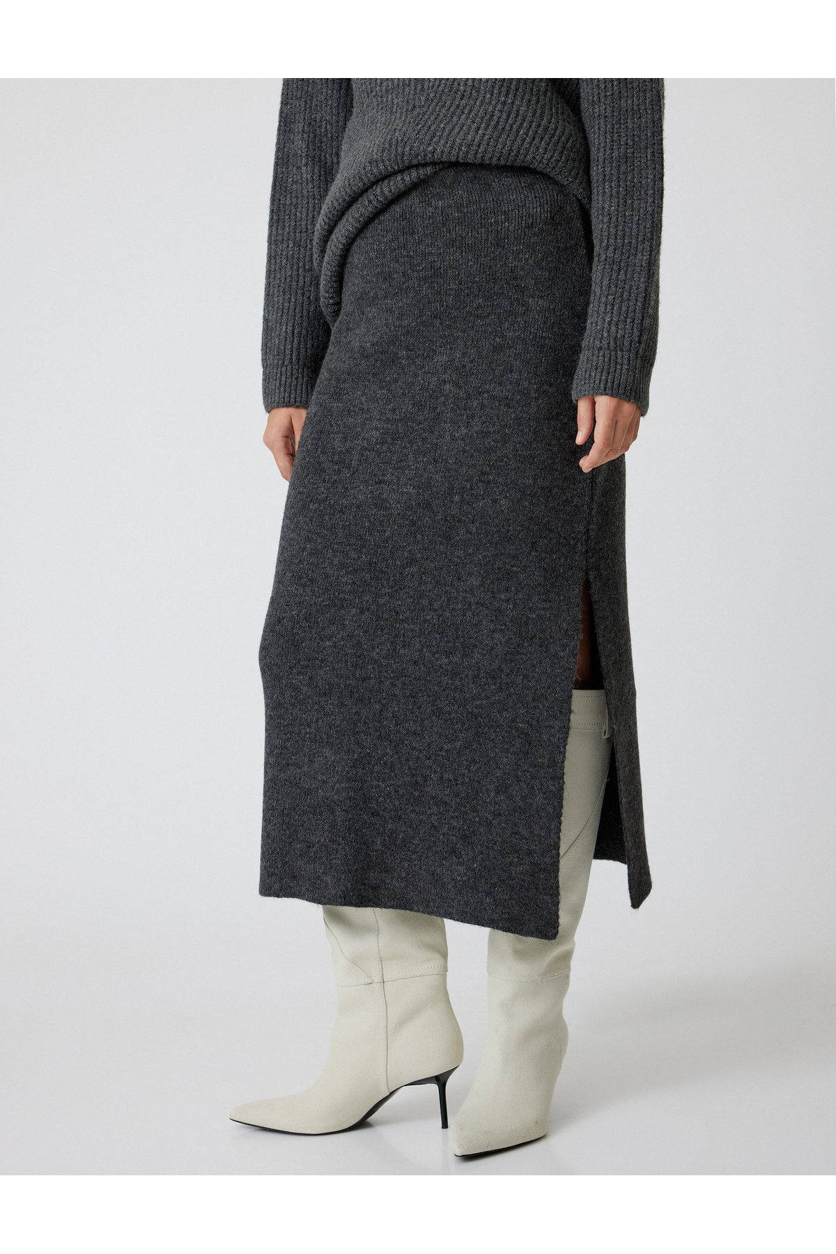 Midi Boy Yırtmaç Detaylı Kalem Triko Etek Midi Boy Yırtmaç Detaylı Kalem Triko Etek 5WAK70002HT XL