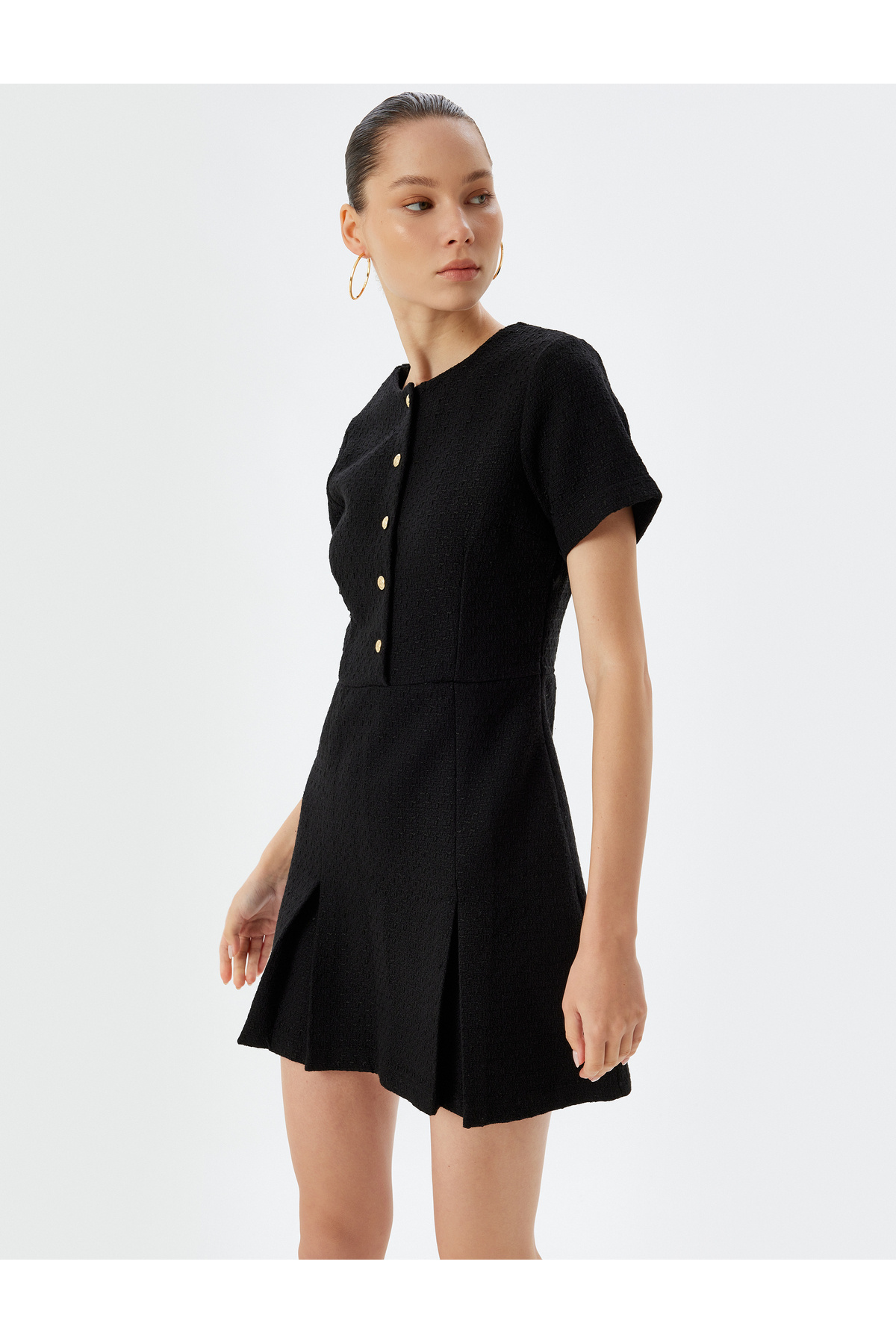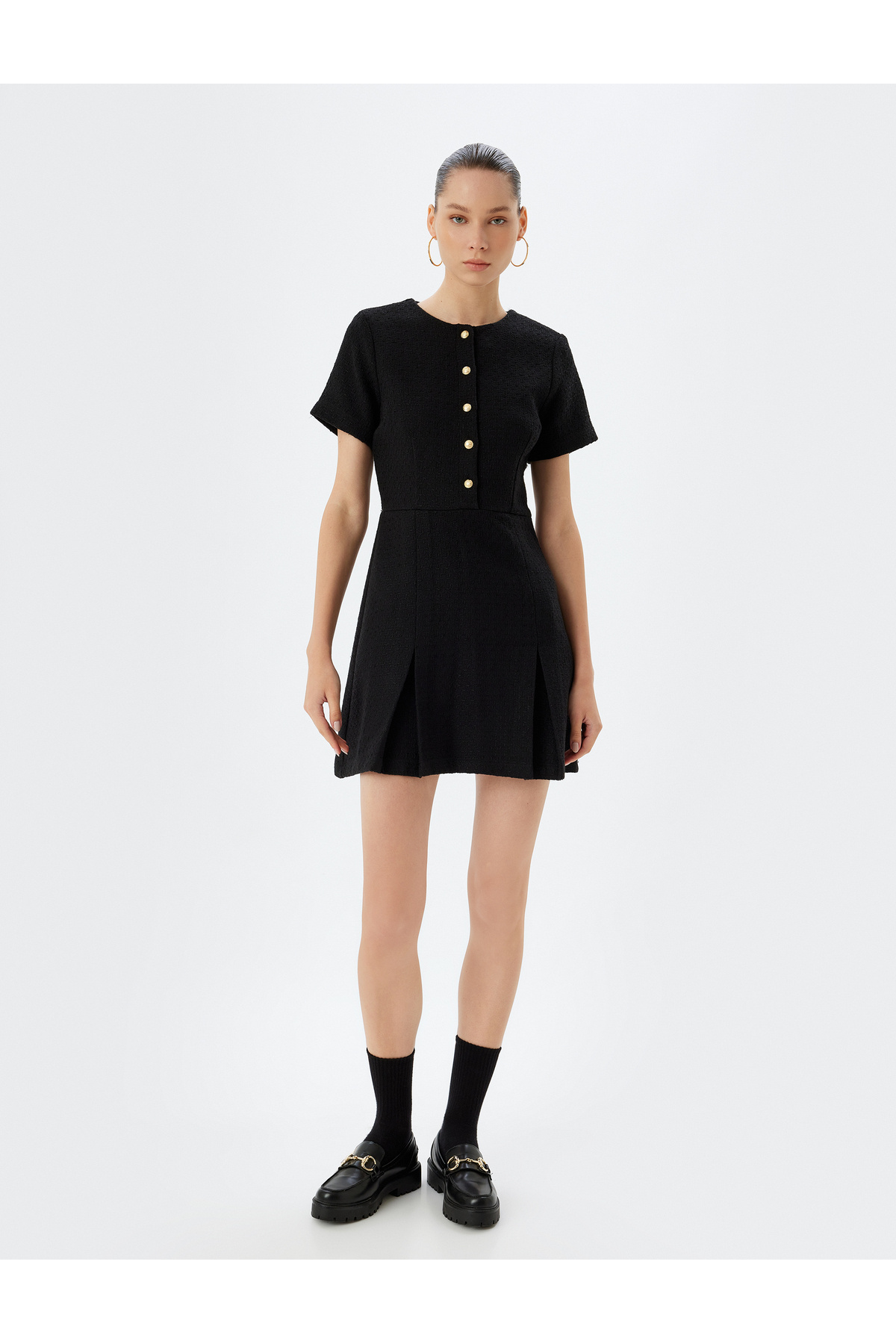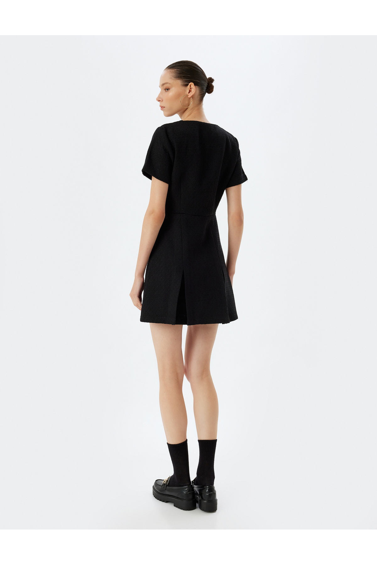 Tüvit Mini Elbise Düğme Detaylı Kısa Kollu Slim Fit Tüvit Mini Elbise Düğme Detaylı Kısa Kollu Slim Fit 5WAL80008IW 42