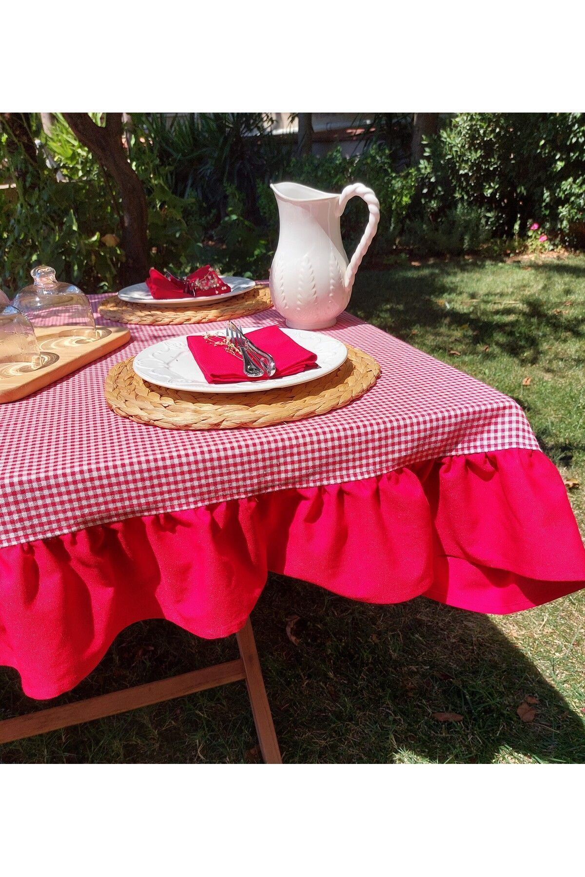 Kırmızı Kareli Keten Fırfırlı Masa Örtüsü Vintage Masa Piknik Salon Örtüsü 130x150cm Kırmızı Kareli Keten Fırfırlı Masa Örtüsü Vintage Masa Piknik Salon Örtüsü 130x150cm ERBA00000030 130 x 150