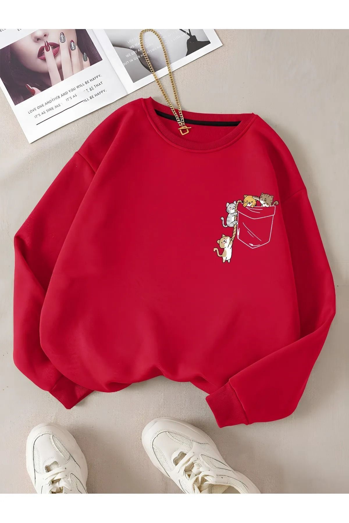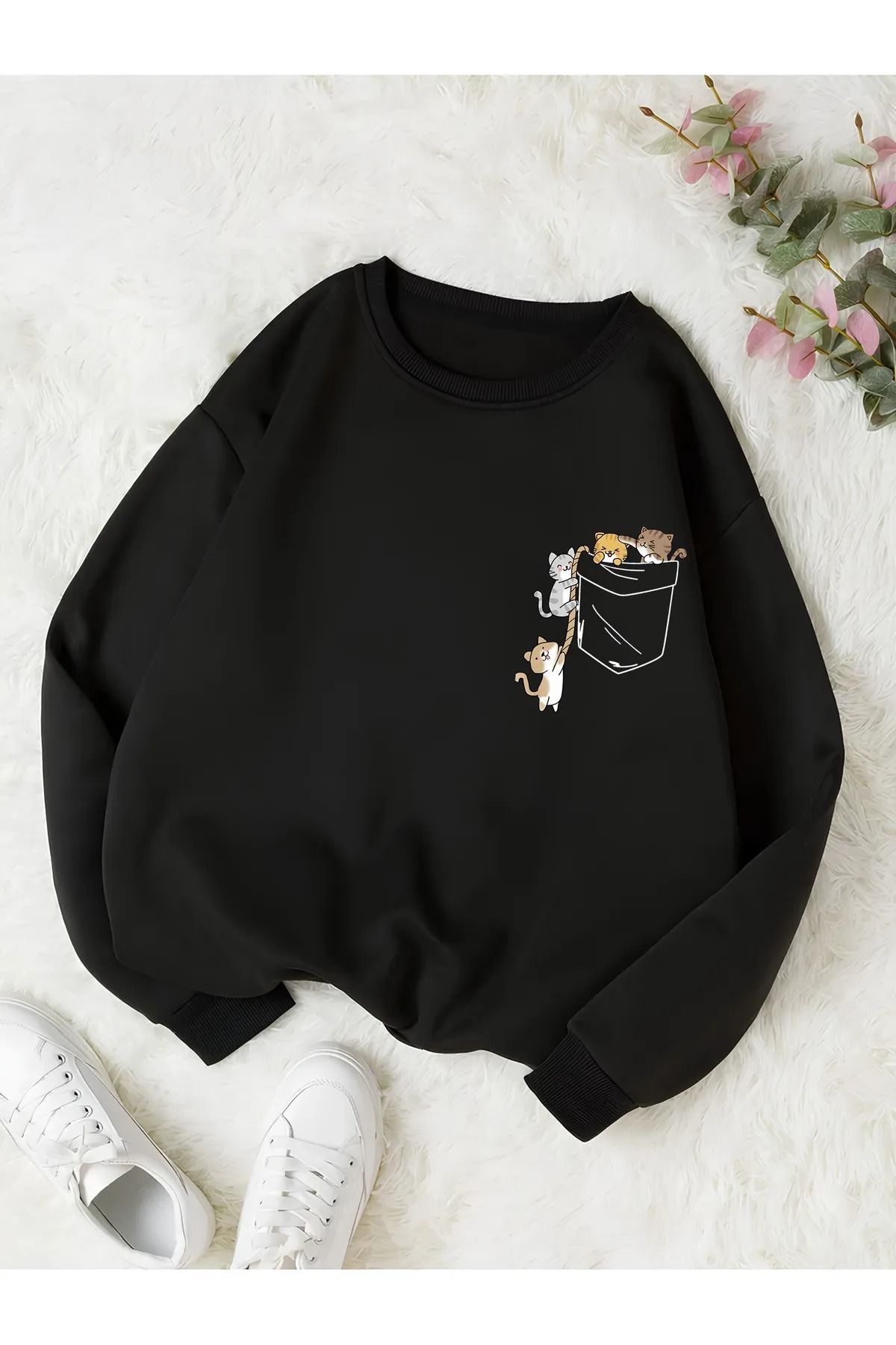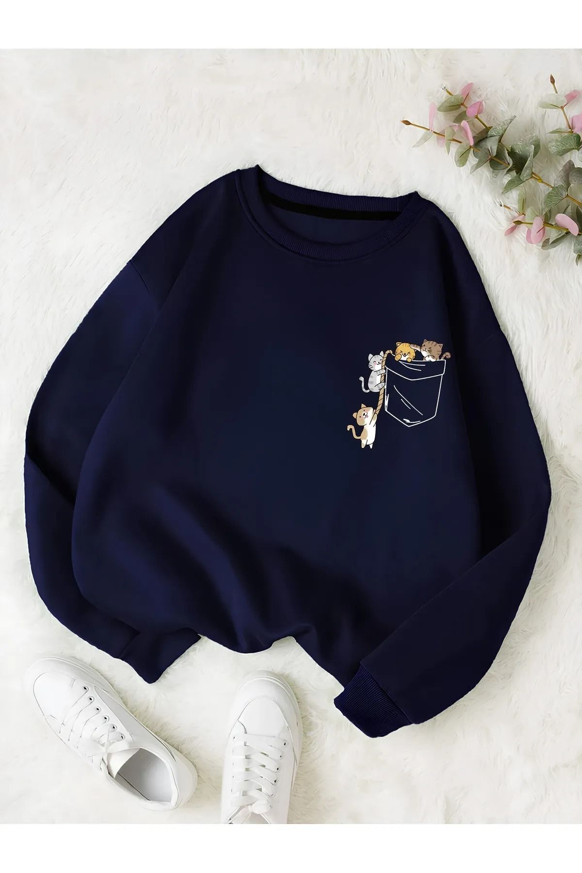 Kadın Bebe Mavisi Kedi Baskılı Pamuklu Bisiklet Yaka Sweatshirt Kadın Bebe Mavisi Kedi Baskılı Pamuklu Bisiklet Yaka Sweatshirt feccy-kedibaskılı-1903 M/M