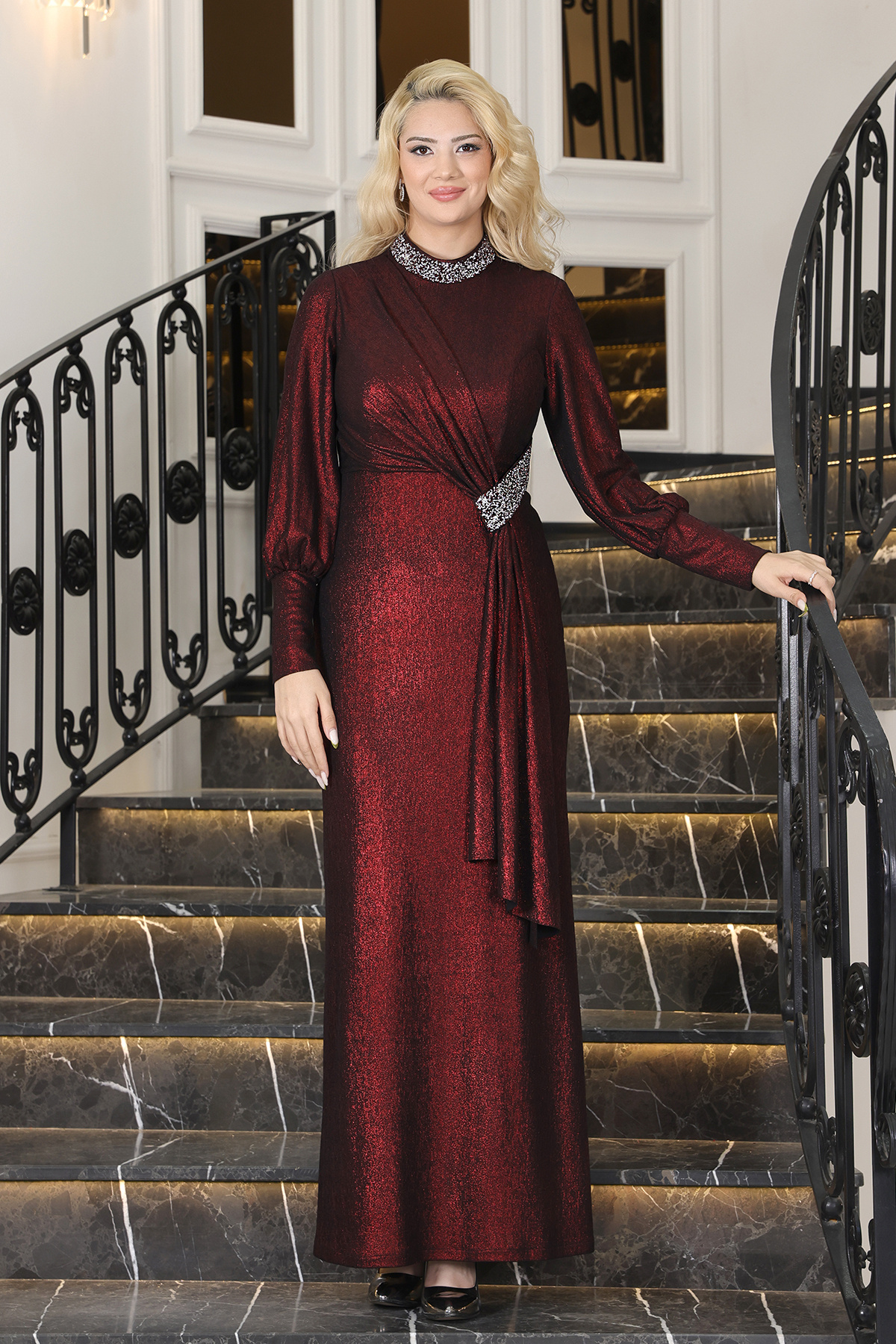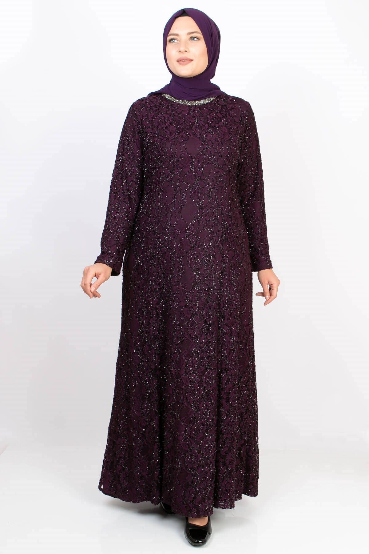 Taş Işleme Detaylı Simli Büyük Beden Tesettür Abiye Bordo DNM2167 Taş Işleme Detaylı Simli Büyük Beden Tesettür Abiye Bordo DNM2167 48