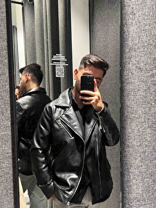 Slim Fit Dar Kesim Polo Yaka Astarlı Fermuarlı Suni Deri Mont C5715AX24AU Slim Fit Dar Kesim Polo Yaka Astarlı Fermuarlı Suni Deri Mont C5715AX24AU 3XL