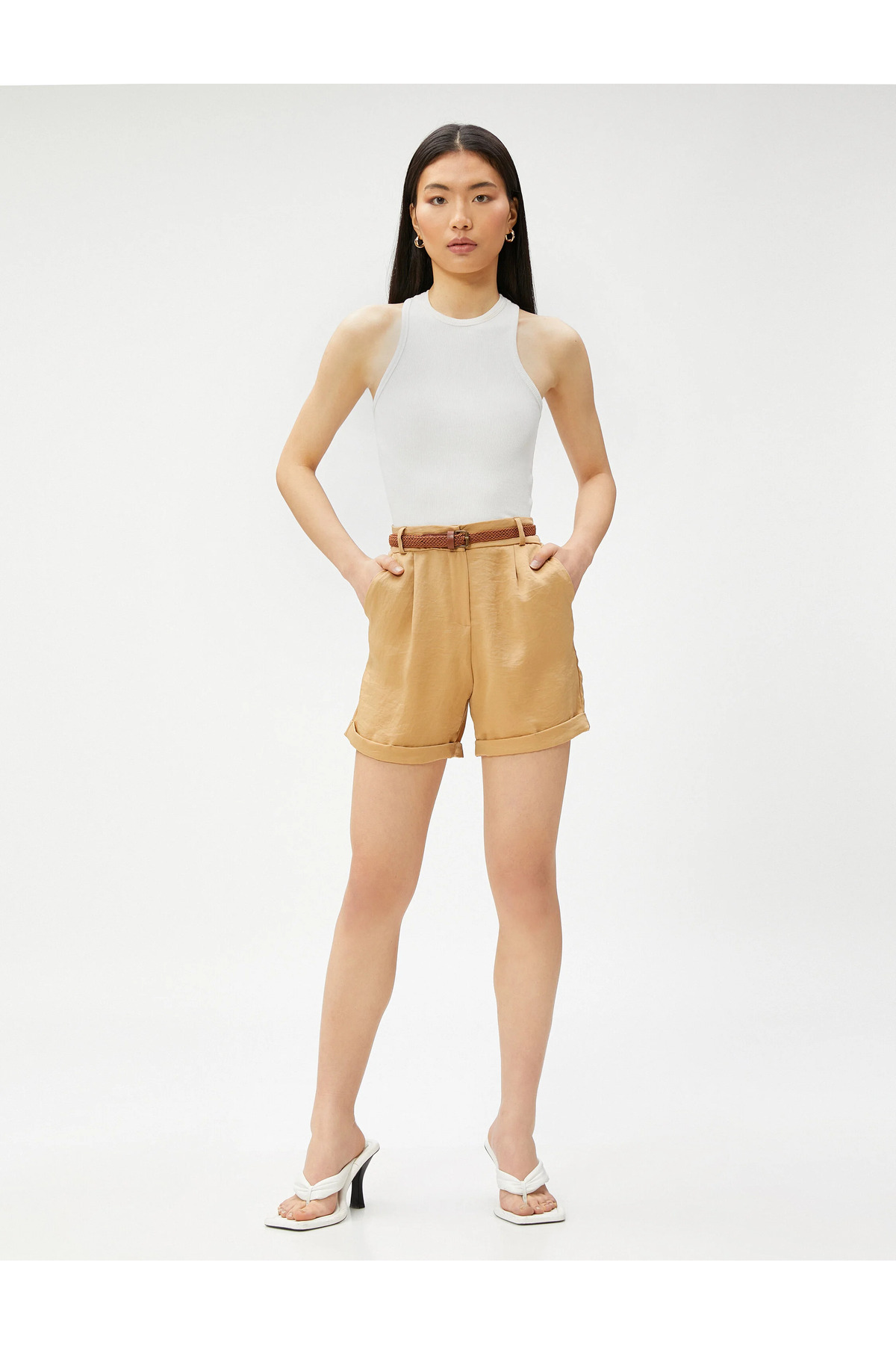 Mini Dokulu Şort Cepli Beli Bağlamalı Rahat Kalıp Mini Dokulu Şort Cepli Beli Bağlamalı Rahat Kalıp 4SAK70096EK XL