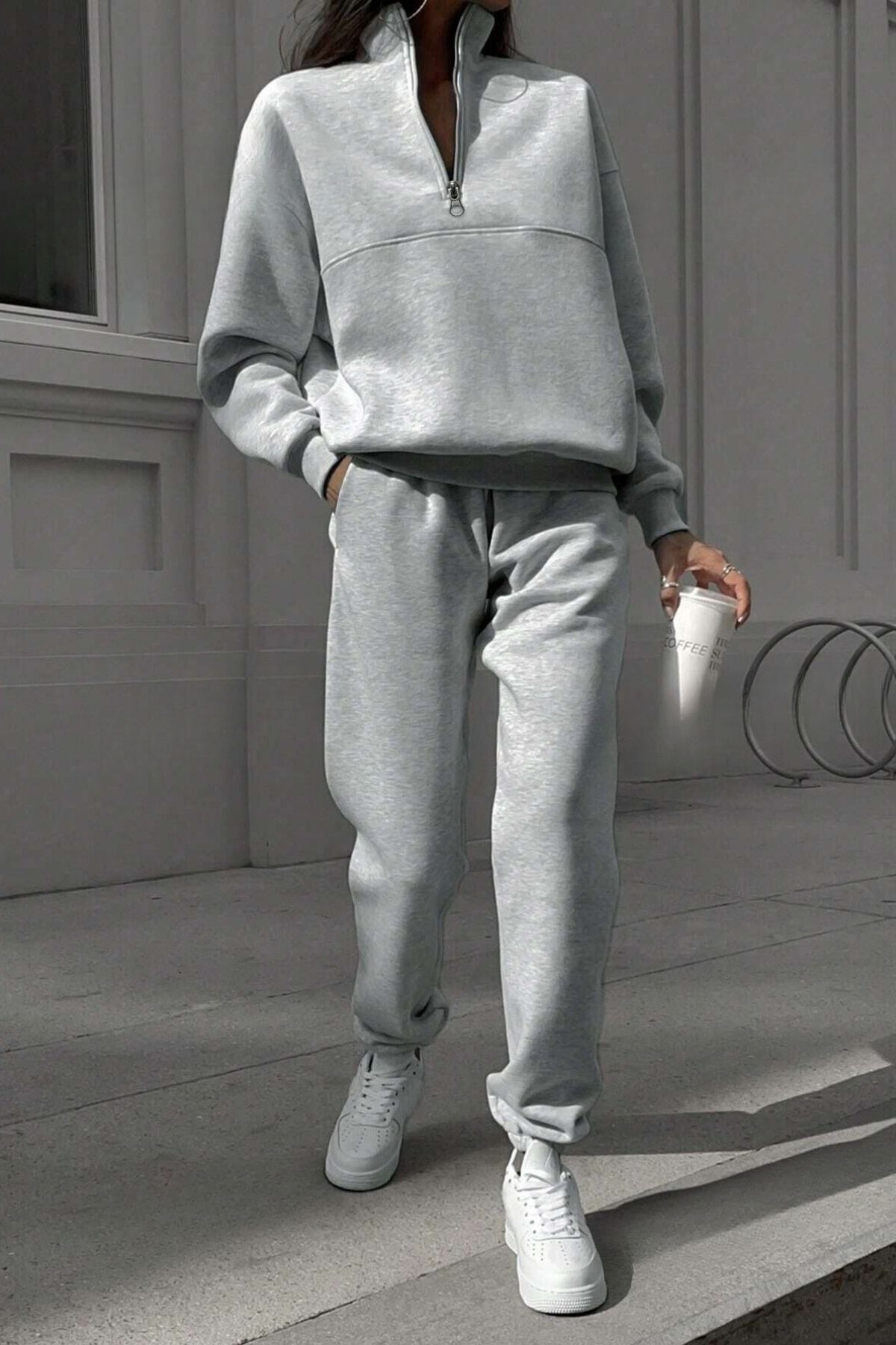 Kadın Vizon Fermuar Detay Dik Yaka Alt Üst Eşofman Takım Kadın Vizon Fermuar Detay Dik Yaka Alt Üst Eşofman Takım KN-DKYKAATKIMM XL